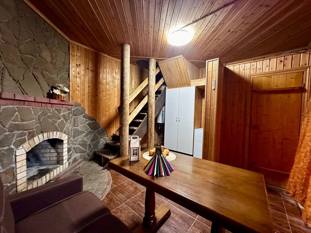 В каждом номере есть дровяной камин, телевизор, двуспальная и односпальная кровать, стол, стулья. Также в номерах есть холодильник, газовая плита, посуда. Для полного удобства отдыхающих в номерах расположены душ и туалет. В данной категории есть сауна, отдельная территория, мангал.В номере