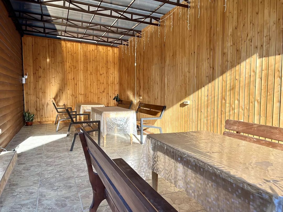 Для удобства гостей на территории имеется общая кухня с микроволновкой, чайником, плитой и посудой, где можно разогреть или приготовить еду, а также теплая беседка, для комфортных посиделок за чашечкой чая. Настоящая баня на дровах укрепит здоровье, а горячий чан под открытым небом добавит разнообразия в любое время года.