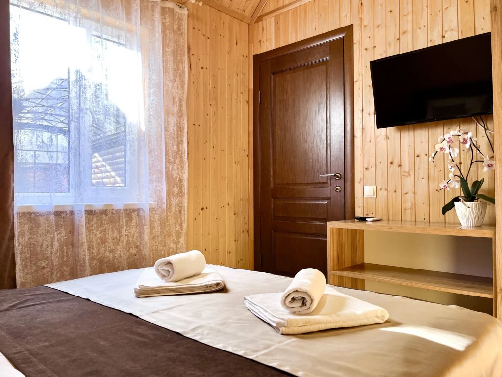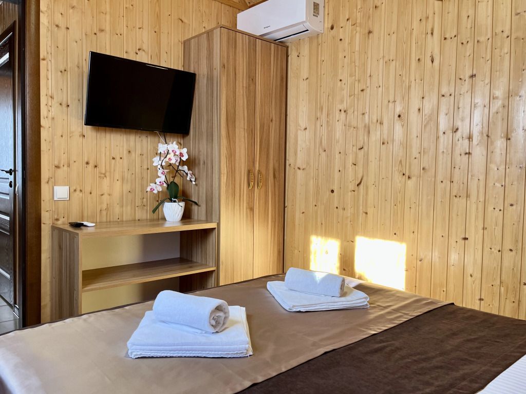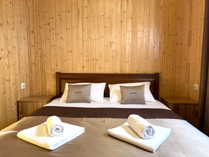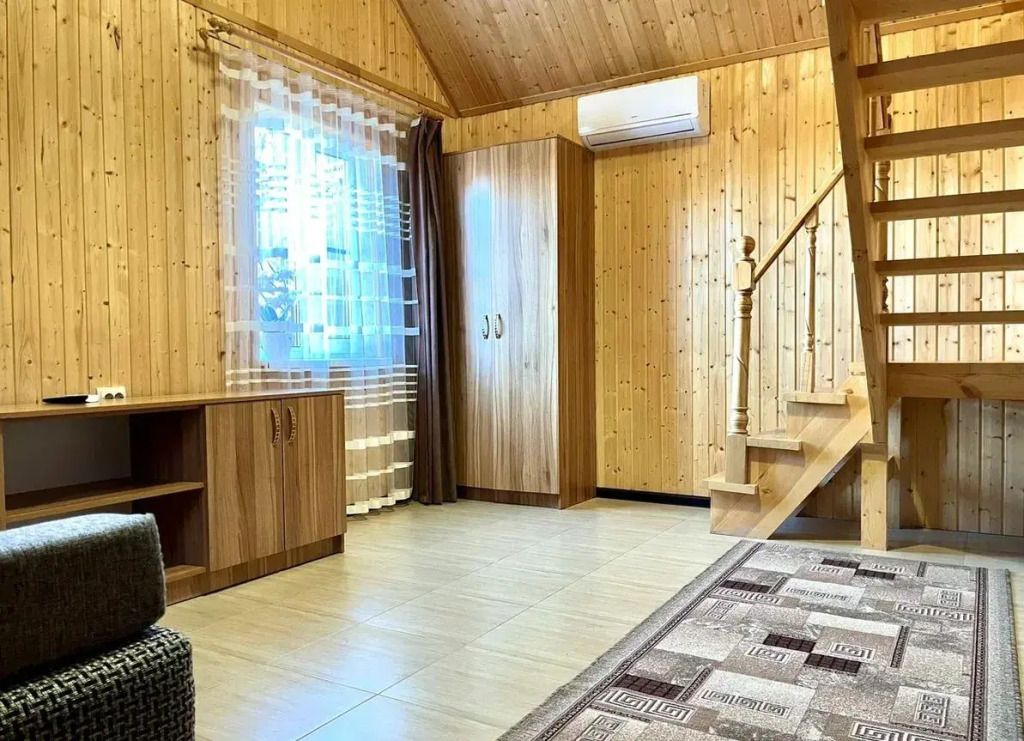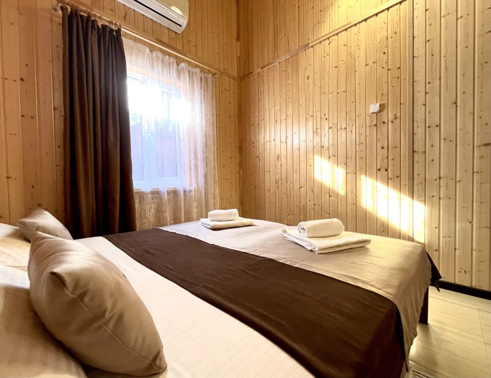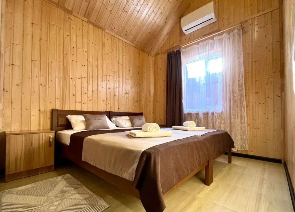 Для проживания отдыхающих подготовлены домики с уютным интерьером, оснащенные всем необходимым для комфортного отдыха. В каждом доме есть телевизор, кондиционер, современная мебель, белоснежное постельное белье. Чистота и комфорт на уровне отеля.
