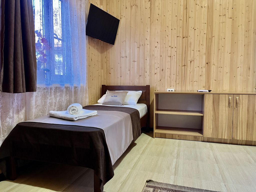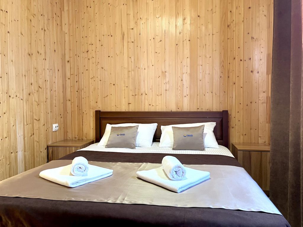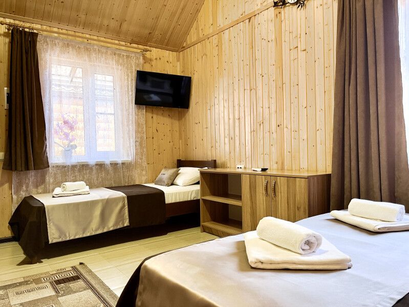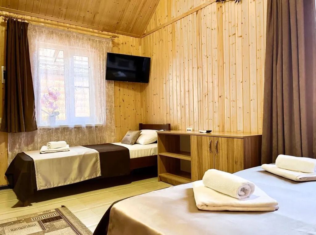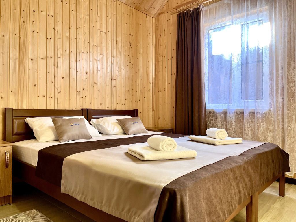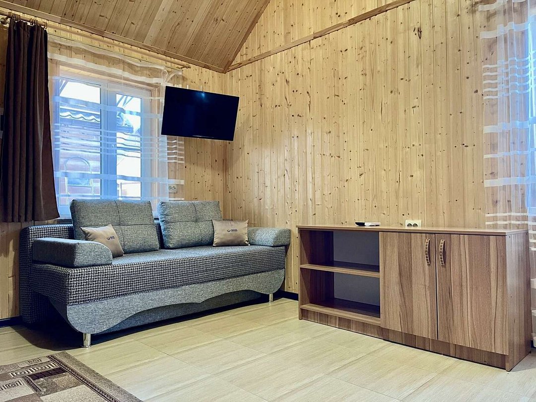 Для проживания отдыхающих подготовлены домики с уютным интерьером, оснащенные всем необходимым для комфортного отдыха. В каждом доме есть телевизор, кондиционер, современная мебель, белоснежное постельное белье. Чистота и комфорт на уровне отеля.