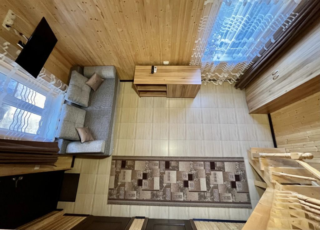 Уютный 2-этажный бревенчатый дом состоит из двух спален.