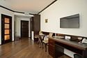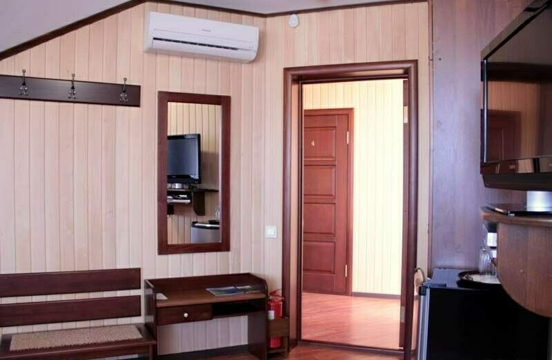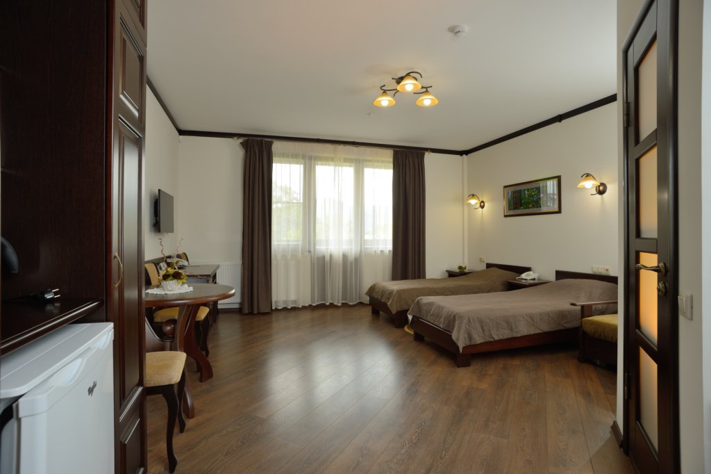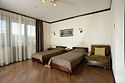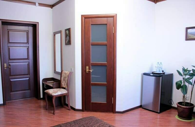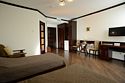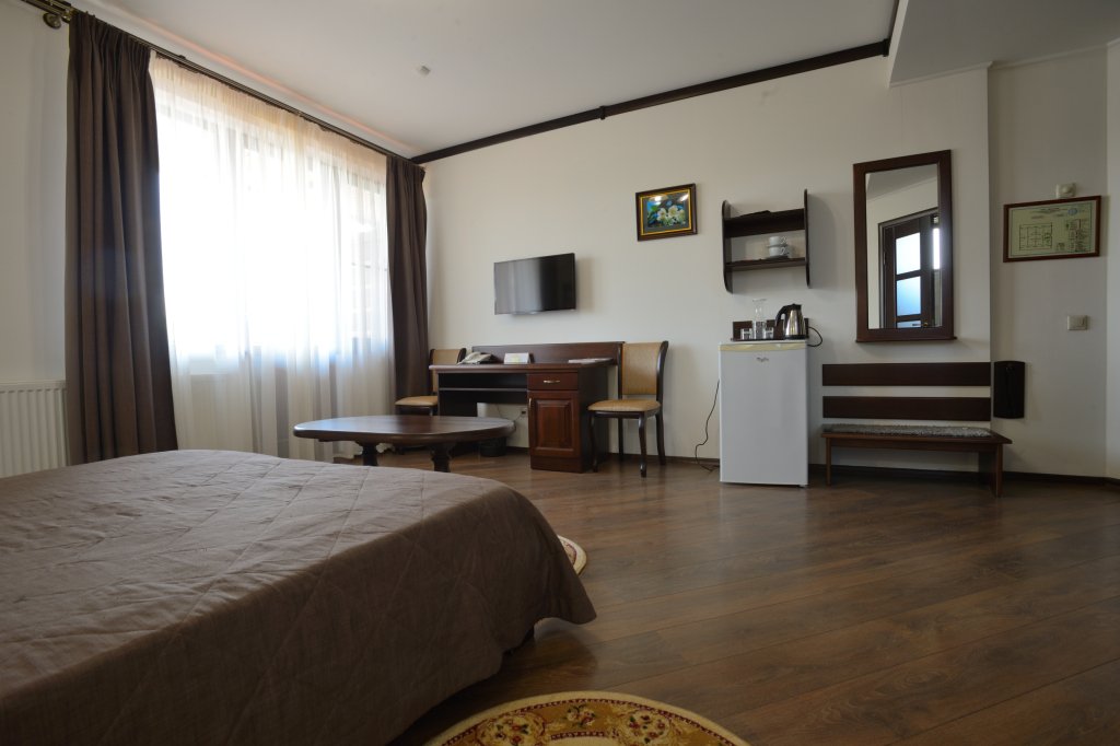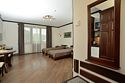 Интерьер номера продуман до мельчайших деталей. Номер с большим индивидуальным балконом. 2-х местный номер оснащен LCD-телевизором и DVD, спутниковой антенной, холодильником с прохладительными напитками, кондиционером. В ванных комнатах сантехника и душевые кабины европейского качества, фен, косметические средства для личной гигиены, махровые халаты и тапочки. В стоимость номера входит: завтрак; чай, кофе; доставка в номер корреспонденции по ее получении; побудка к определенному времени; предоставление кипятка, иголок, ниток; наличие в номере телевизора, телефона, холодильника с напитками; парковка автомобиля; ежедневная уборка номера с заправкой кровати и сменой полотенец; пользование индивидуальным сейфом; вызов такси; WiFi интернет, спутниковое телевидение; справочная информация по экскурсионным объектам.В номере
