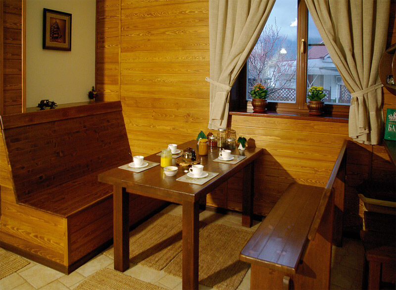 Что может быть лучше, чем после активного отдыха в горах посетить душевную баню. Ароматный травяной чай с горным медом, приятные халаты и полотенца, наши фирменные веники и прохладная купель обязательно ждут Вас .