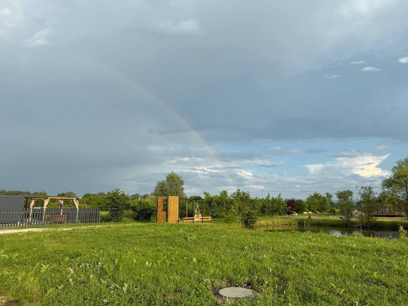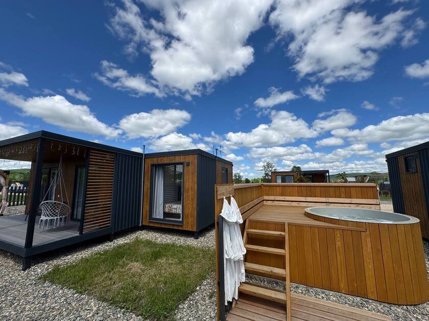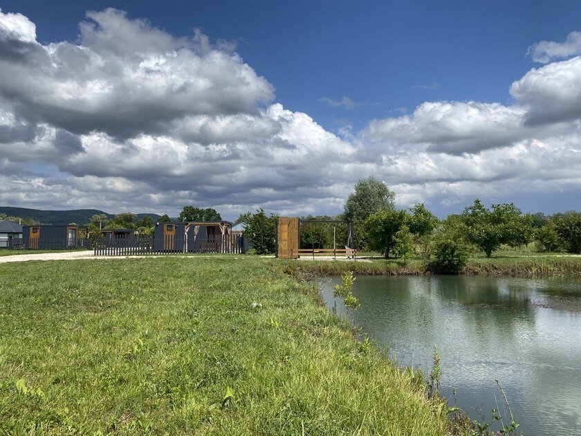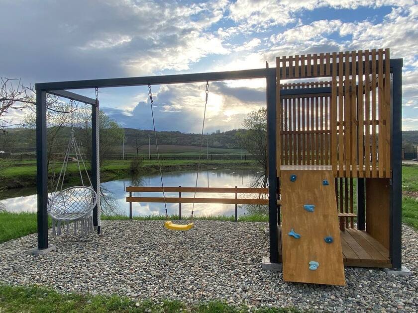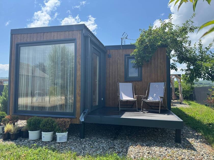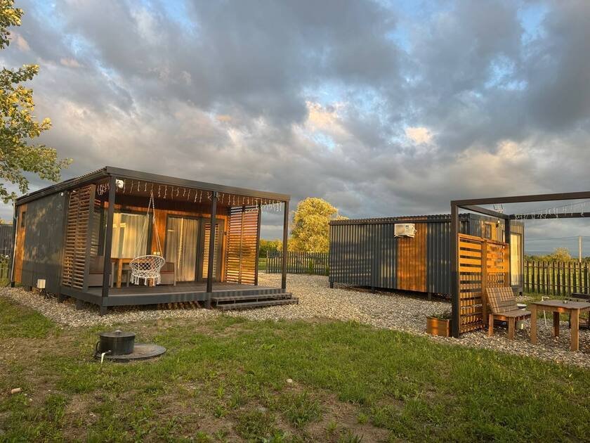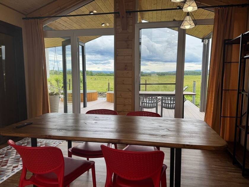 Дом с купелями 37°С и 20°С, а также баней или сауной. С террасой 40 м², отдельной спальней и кухней-гостиной. Дом уникален тем, что с его панорамных окон открывается вид на плато Лаго-Наки, горы Фишт-Аштенского массива и поля, а пасущиеся буренки, пение птиц и легкий ветерок добавят эмоций.