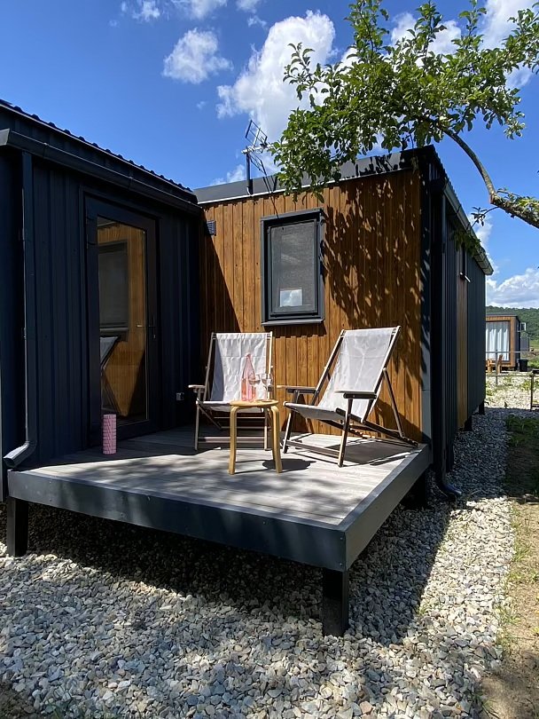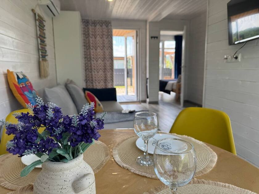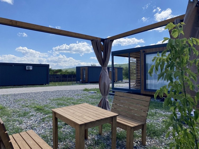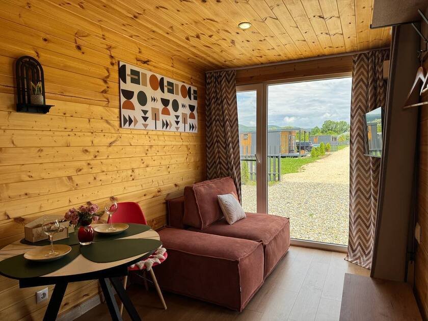 Дом с террасой площадью пятьдесят квадратных метров, с отдельной спальней и кухней-гостиной. Этот дом уникален, из его панорамных окон открывается потрясающий вид на плато Лаго-Наки. В доме могут разместиться два человека в спальне, два на диване, а также предусмотрено удобное дополнительное место.