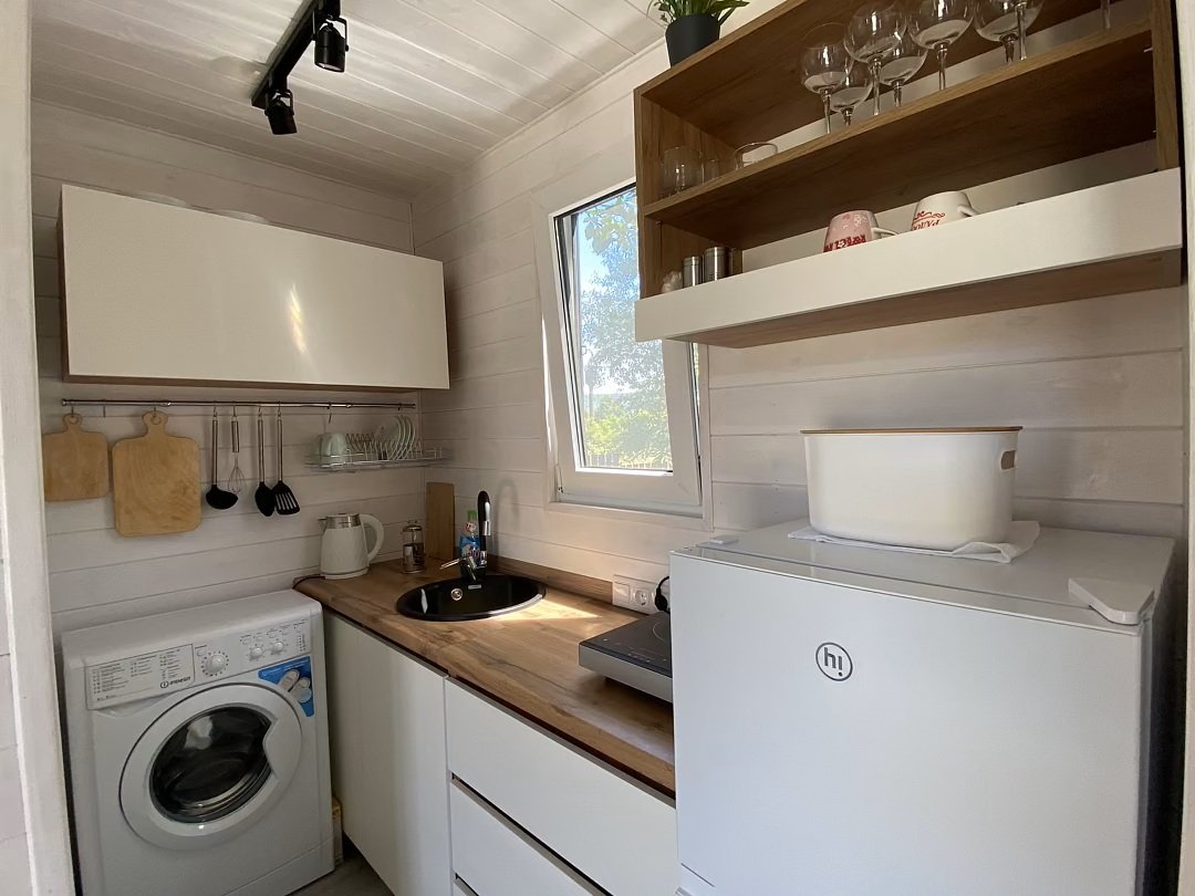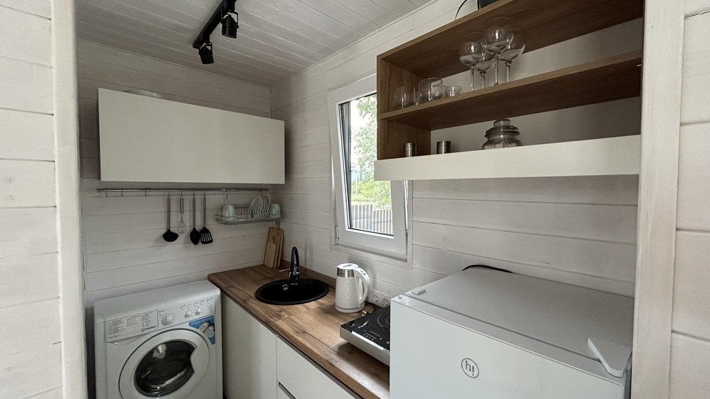 Стиральная машина обеспечивает комфорт проживания даже на длительный срок.
