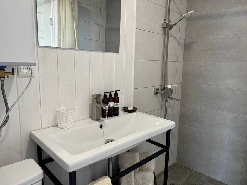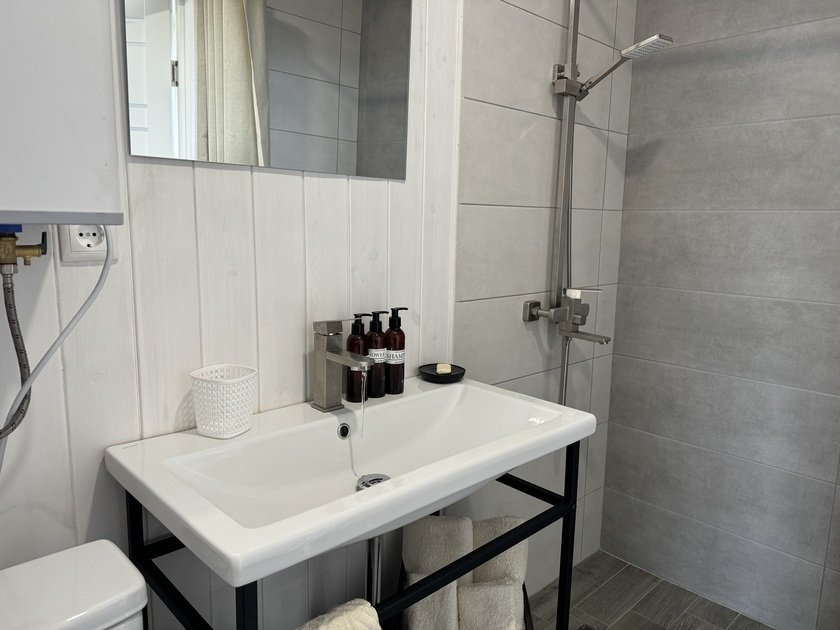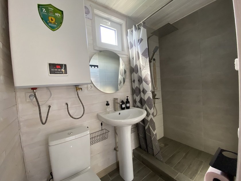 Современный санузел оснащён душем, раковиной, туалетом и стиральной машиной для удобства жильцов. Терраса или веранда для утреннего кофе на свежем воздухе. Небольшой садик с зоной барбекю для приготовления еды на природе.