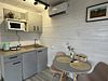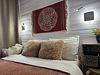 Для вас — двуспальная кровать с ортопедическим матрасом с льняным бельем, диван тоже ортопедический. Бытовая техника: стиральная машина, чайник, индукционная плита, микроволновая печь, вся посуда.