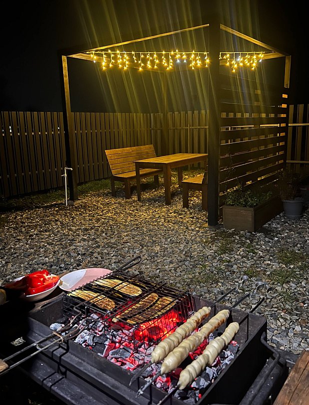 Возле каждого коттеджа расположена удобная беседка с мангалом. Гости могут приготовить вкусные блюда и насладиться ими в кругу семьи и друзей, наслаждаясь приятным общением и отдыхом на свежем воздухе.