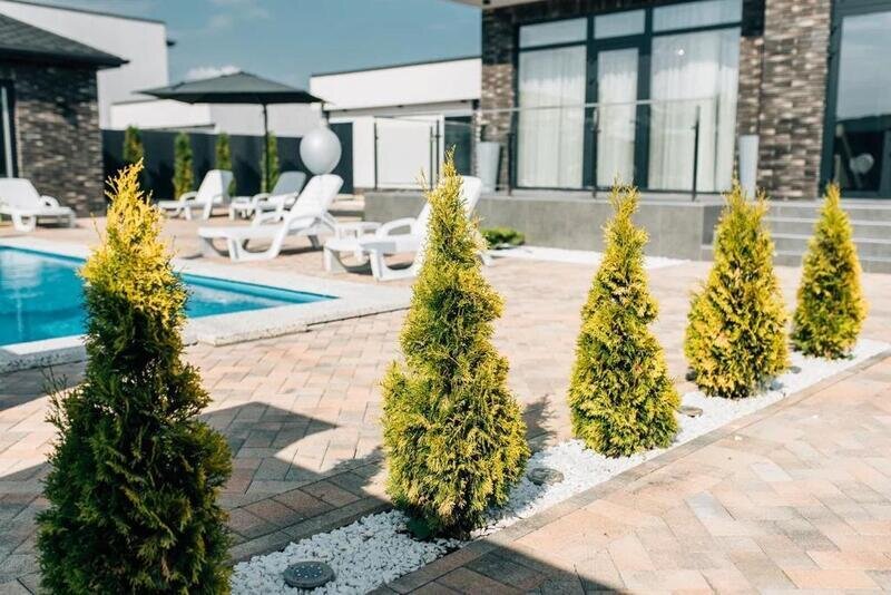 Тип бассейна: открытый бассейнВода в бассейне: подогреваемый бассейнРядом с бассейном: шезлонги, зонтикиТемпература в бассейне: 30 °CРазмеры: 3 x 7 мПлощадь: 21 м²Беседка с мангалом