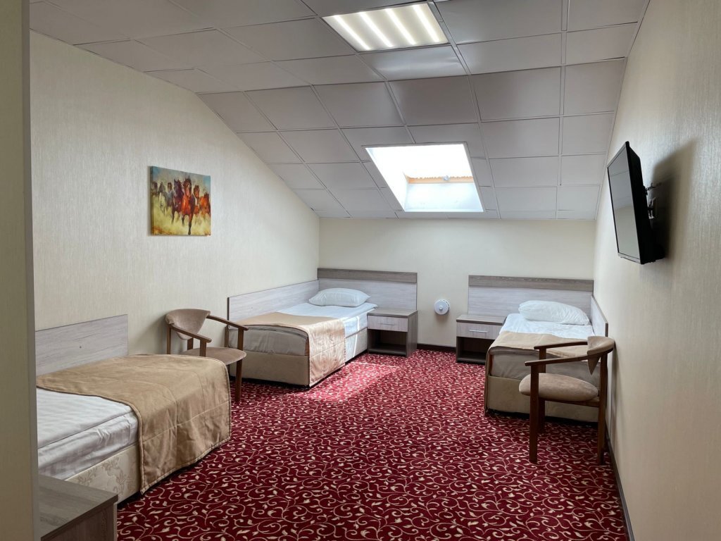 Мансардный 3-х местный номер с тремя односпальными кроватями, с удобствами и всем необходимым для комфортного отдыха.