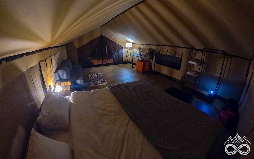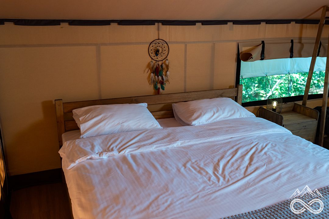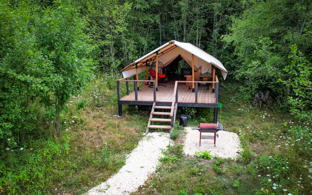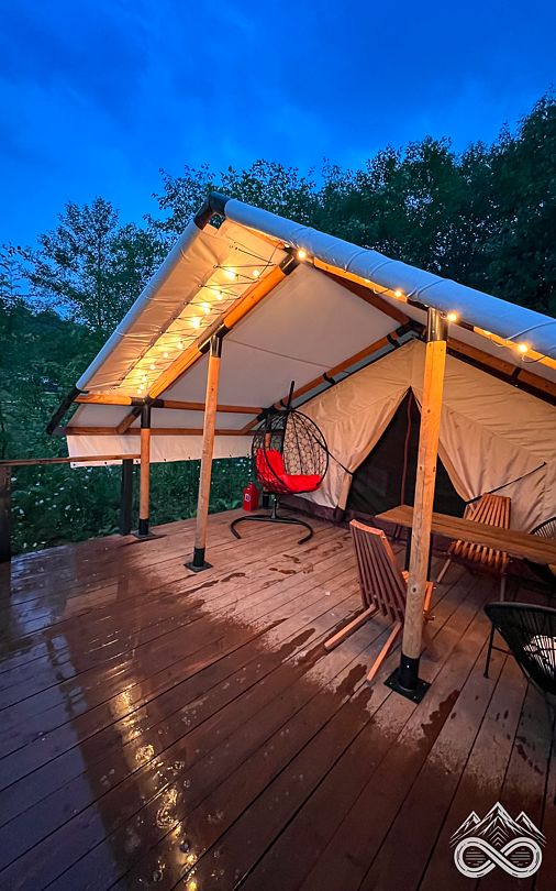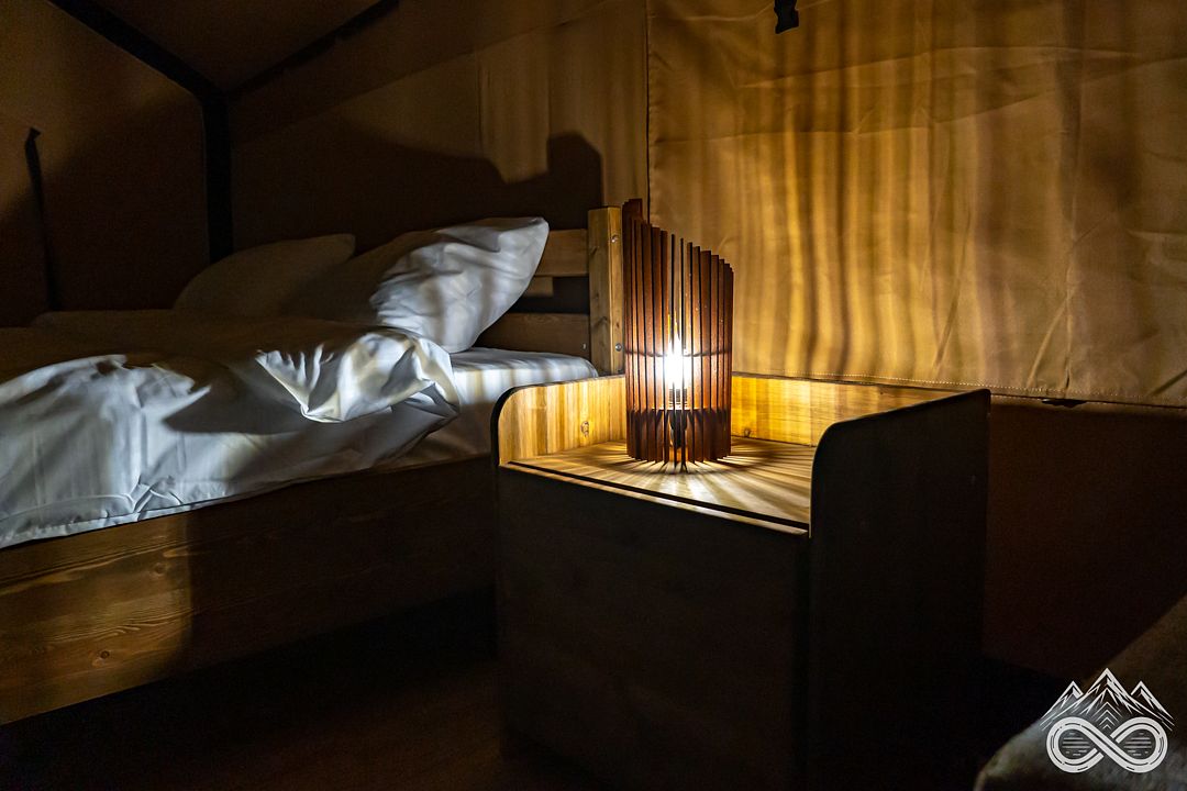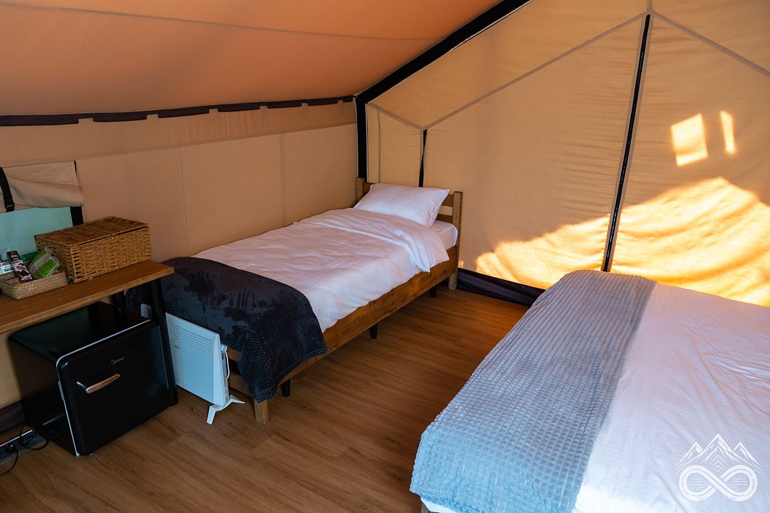 Каждый сафари-тент — это уютное место, где можно наслаждаться красотой природы и всем комфортом, присущим гостинице. На краю леса, с собственной террасой и мангальной зоной, эти домики обеспечивают уединение и живописные виды. После активного дня можно собраться на общей кухне-гостиной с дровяной печью для уютных бесед или отдохнуть у большой костровой зоны, где вечерами собираются гости, делясь впечатлениями и искренними моментами.