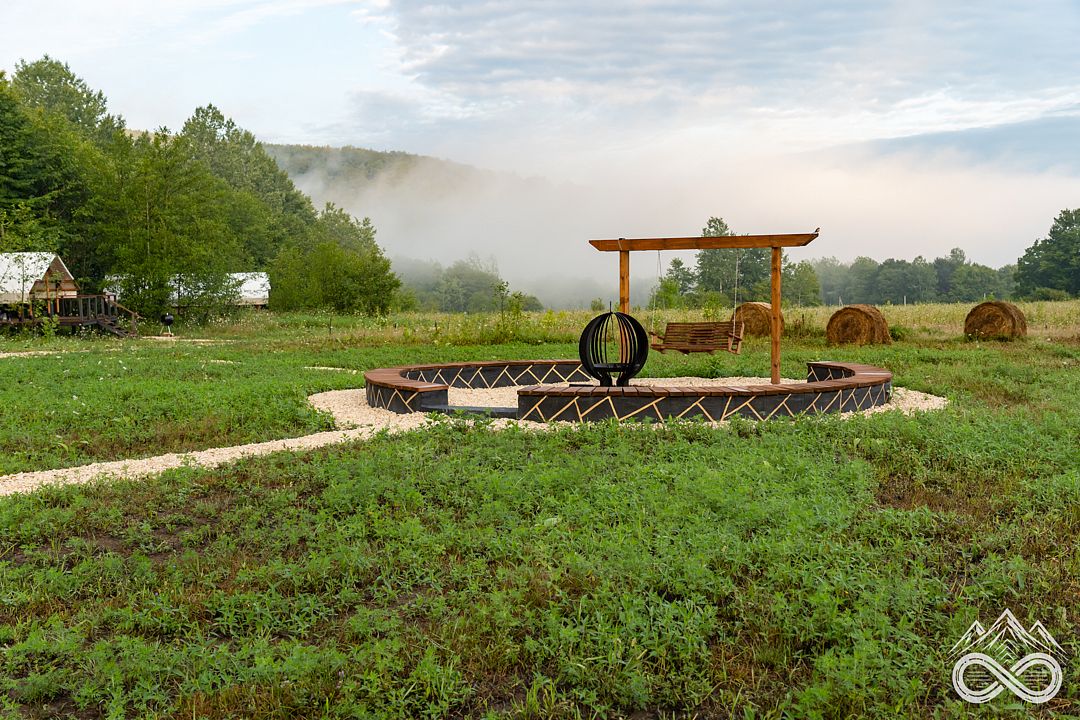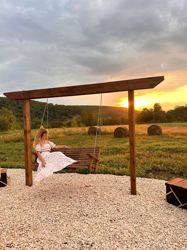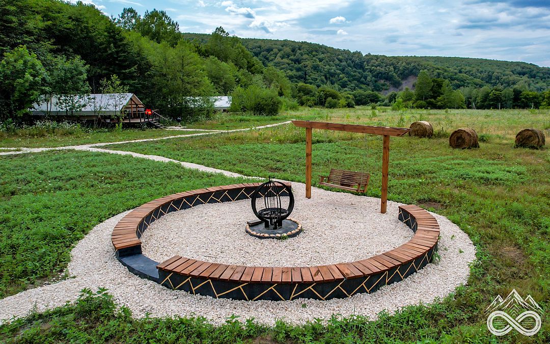 Здесь можно уютно провести время в компании близких людей, наслаждаясь теплом огня и красотой звездного неба. Зона для разведения костра оформлена со вкусом, а рядом расположена качель, что создает особую атмосферу и располагает к общению.