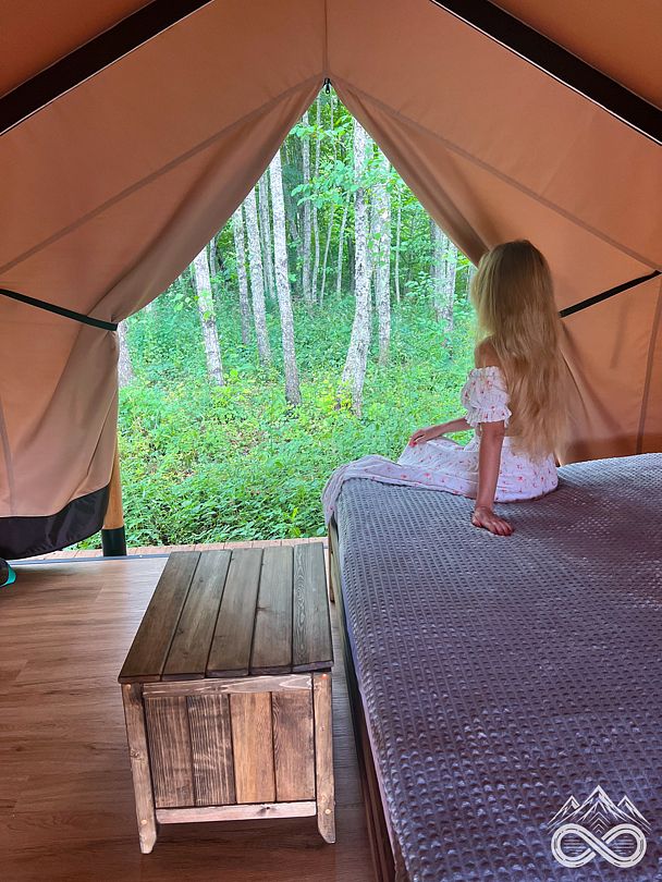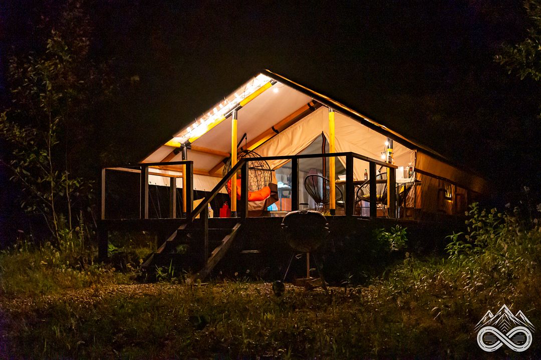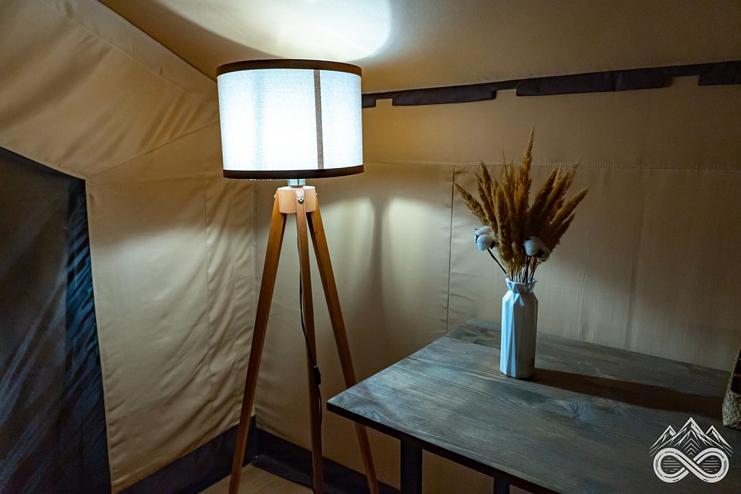 Сафари-тент это баланс между природой и комфортом. В нём есть всё необходимое для круглогодичного проживания. Так же на территории есть общая кухня-гостиная. Большая костровая зона. Банный чан и джакузи для любителей водных процедур.