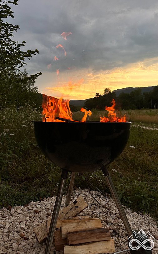 Рядом с каждым сафари-тентом расположился индивидуальный мангал или барбекю-гриль, где вы сможете приготовить ароматные блюда на открытом огне и насладиться трапезой в компании близких и друзей.