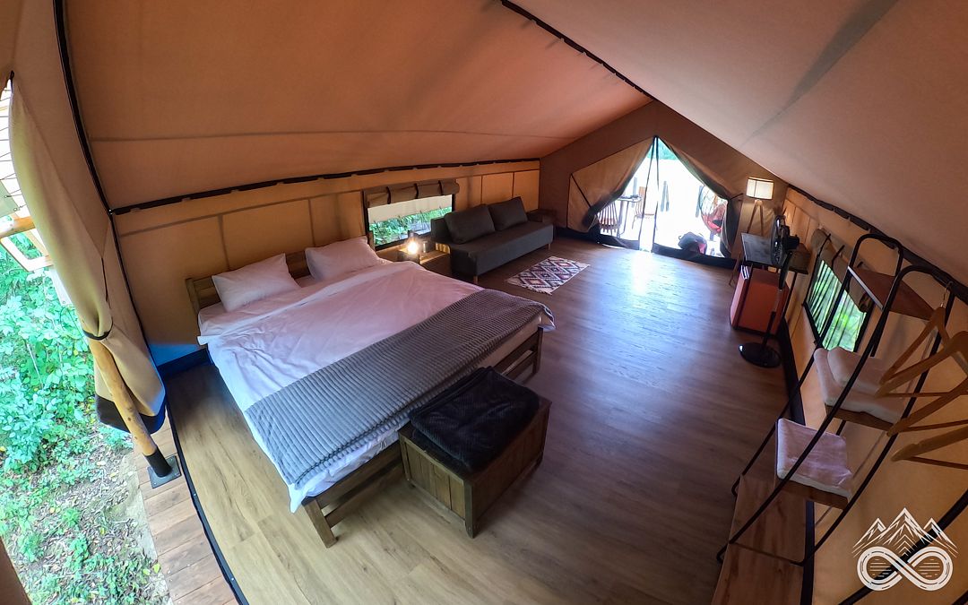 Глэмпинг «Время гор» приглашает ценителей природы окунуться в атмосферу уюта и гармонии среди живописного леса. Просторная территория в три с половиной гектара предлагает современные сафари-тенты, созданные для комфортного проживания круглый год. Протекающая рядом река Сахрай, великолепные водопады и другие природные чудеса делают это место идеальным для тех, кто стремится к приключениям и исследованию.