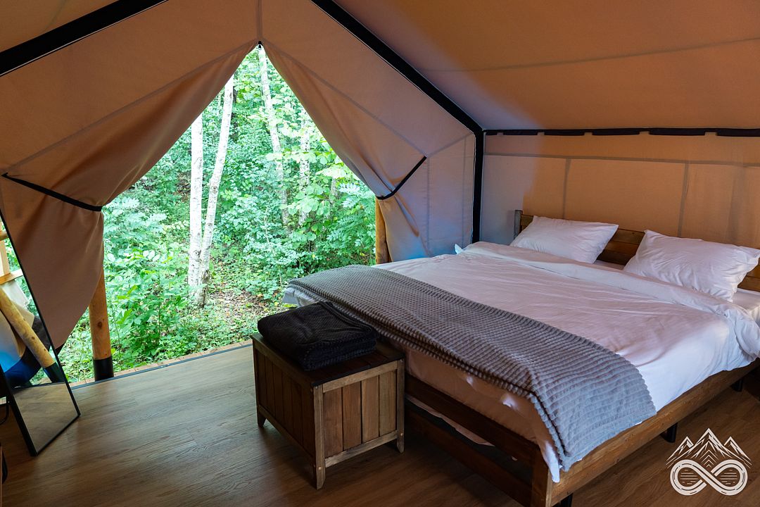 Сафари-тент — это сочетание близости к природе с комфортом гостиничного уровня! Отдельные домики-сафари расположены на краю леса, откуда открывается прекрасный вид.