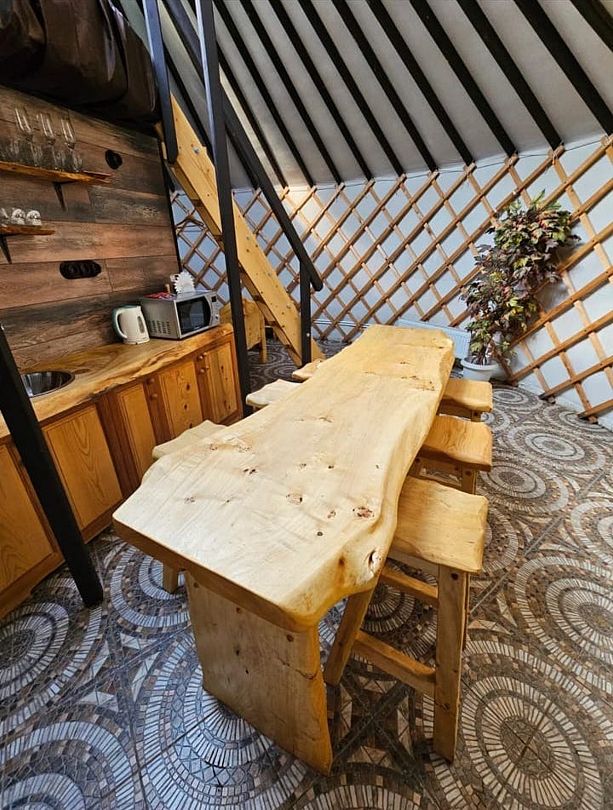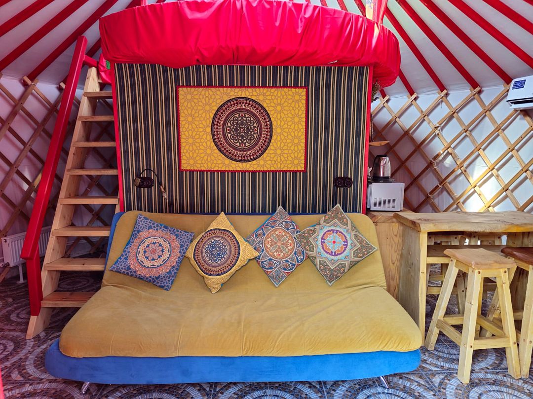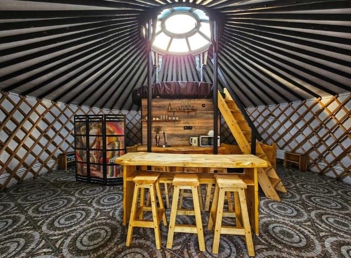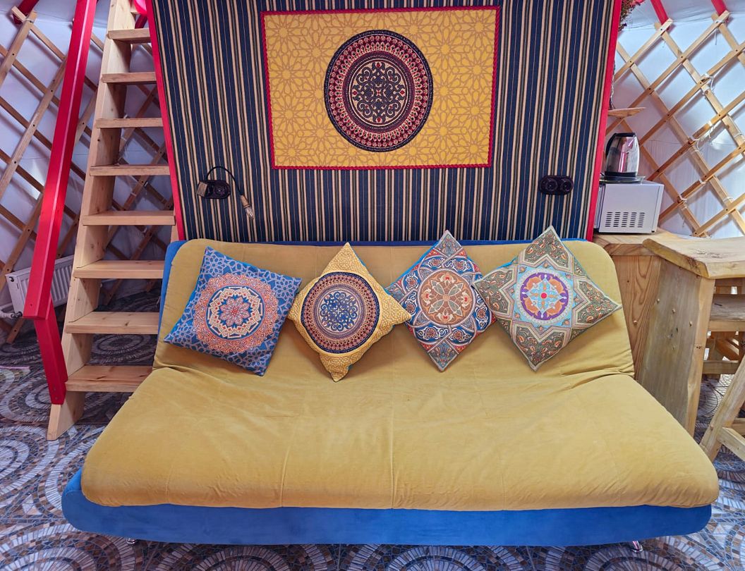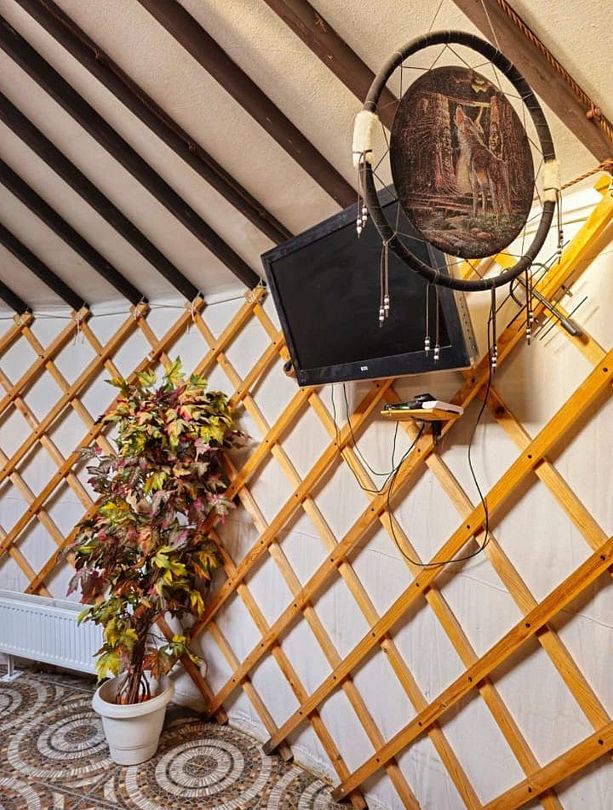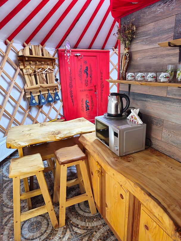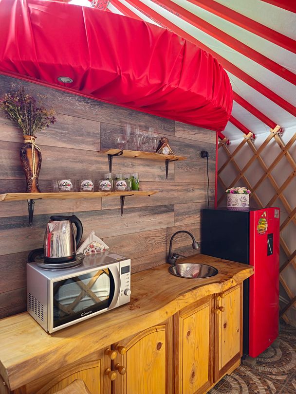 Каждая юрта оборудована всем необходимым для комфортного проживания: собственной душевой, туалетом, сплит-системой и кухонной зоной.