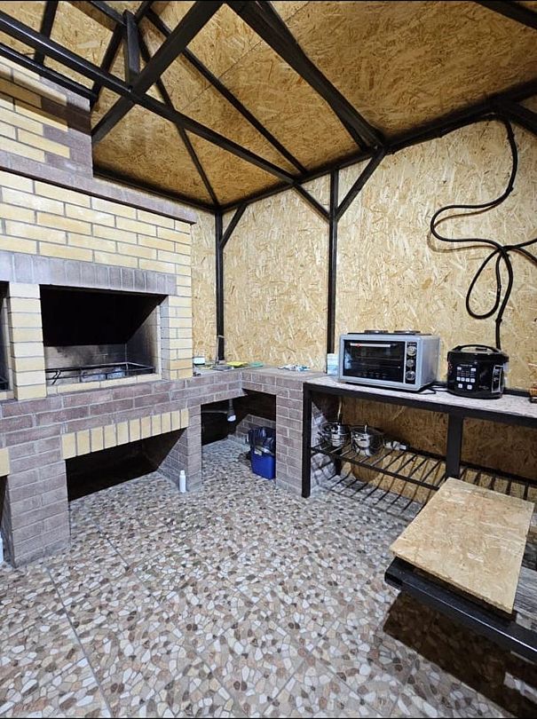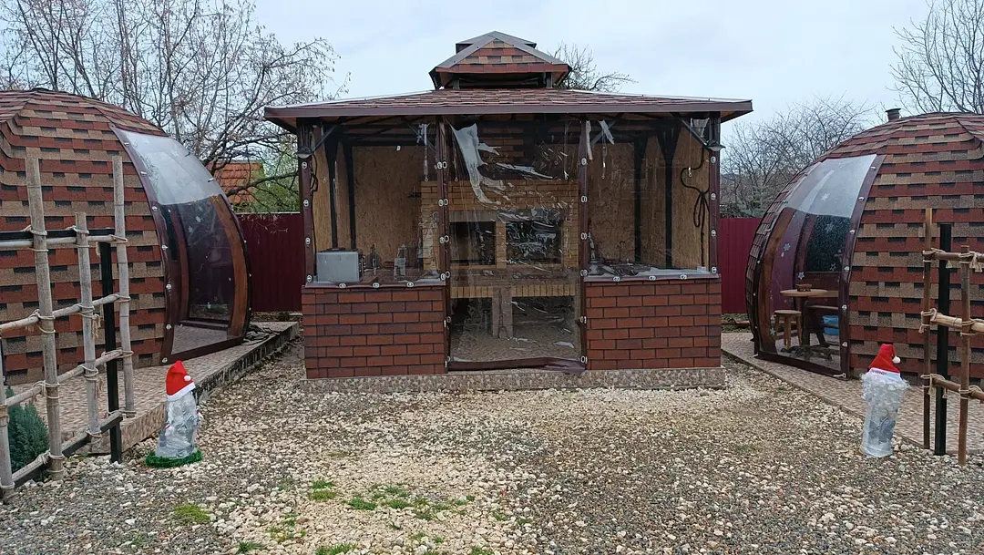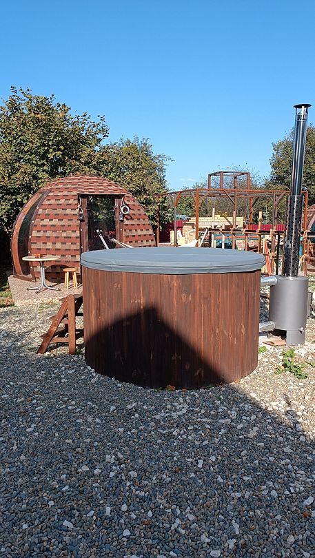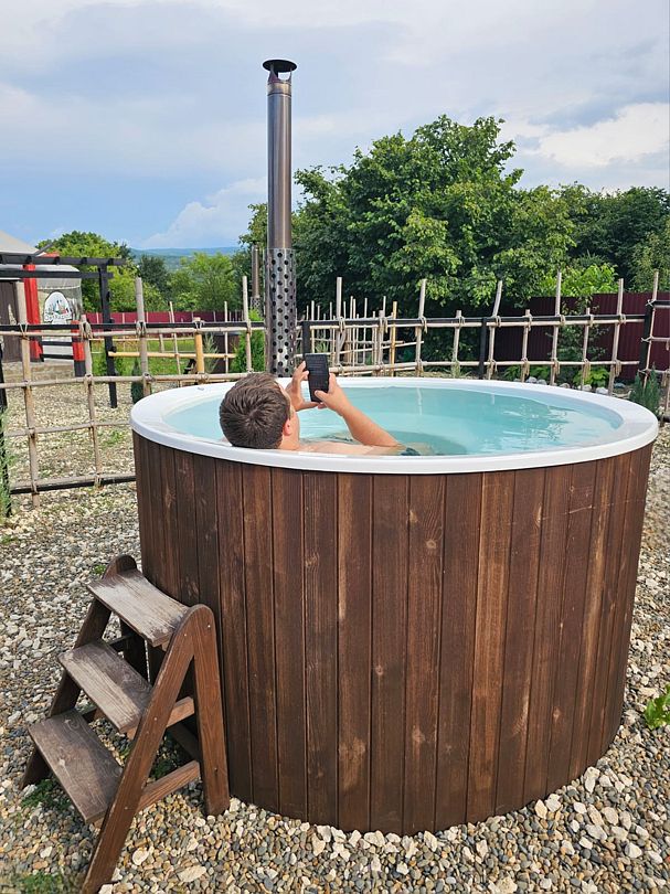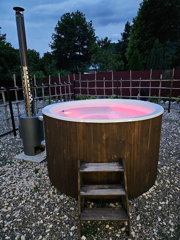 На территории комплекса оборудована специальная зона для приготовления пищи, где вы найдете все необходимое: от барбекю до печи-духовки и полного набора посуды. Особой популярностью у гостей пользуется возможность круглогодичного отдыха в купели под открытым небом. Современные удобства включают стабильный Wi-Fi и парковку для вашего автомобиля.