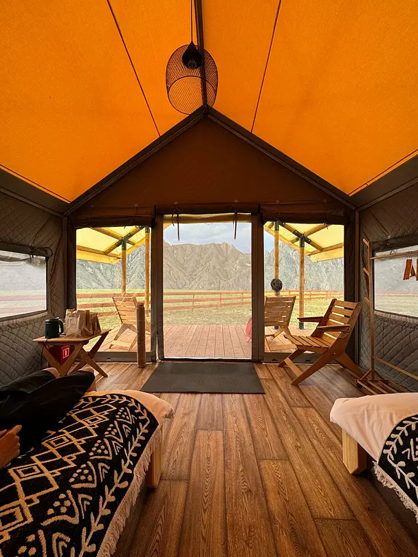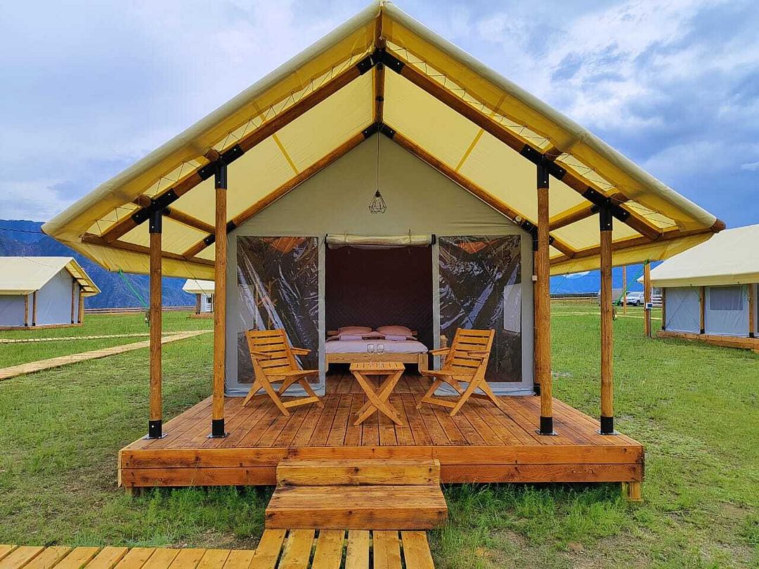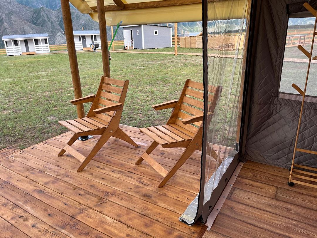 Сафари-тенты предлагают максимальный комфорт: кровати, сделанные местными мастерами, обеспечивают крепкий сон, а матрасы от проверенных производителей поддерживают спину. Все детали продуманы: от прочного постельного белья из 100% хлопка до уникальных простыней с подогревом, адаптированных к климату Алтая. Каждое утро гости просыпаются в уютной атмосфере, окруженные теплом.