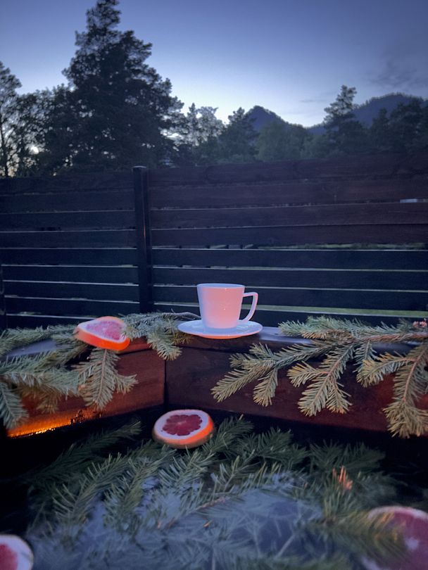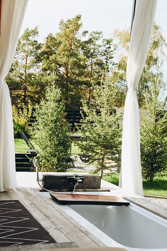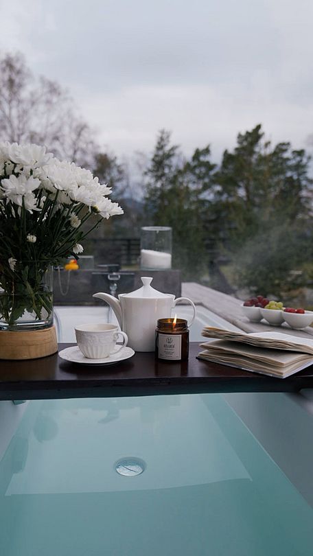 Дополнительно оснащён встроенной в террасу ванной с волшебным видом на горы (используется только в тёплое время года).