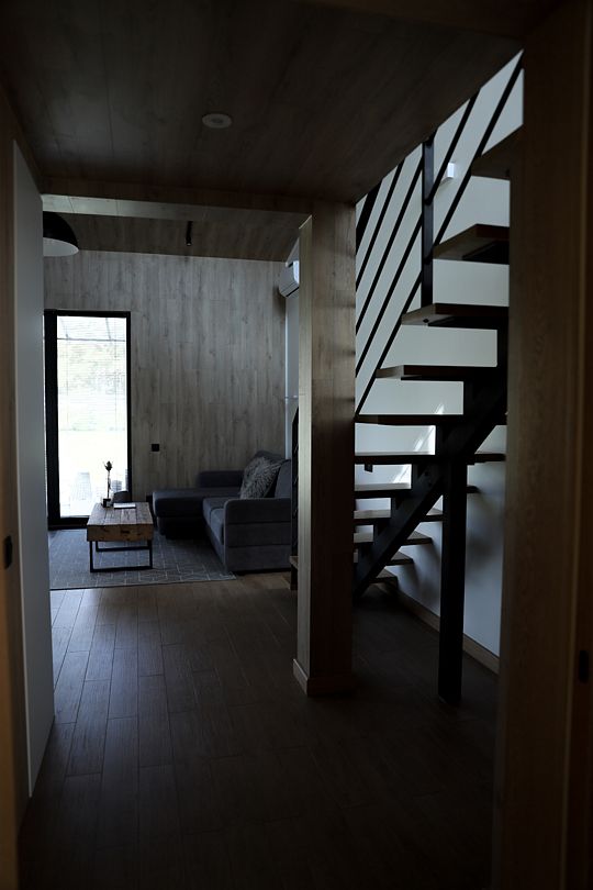 Раздельная климатическая система на двух этажах, система приточно-вытяжного воздухообмена, периметр первого этажа (включая прихожую и ванную) полностью обогревает водяной тёплый пол.