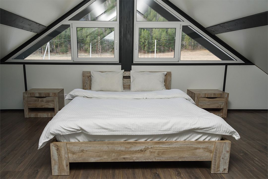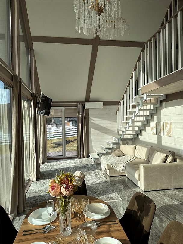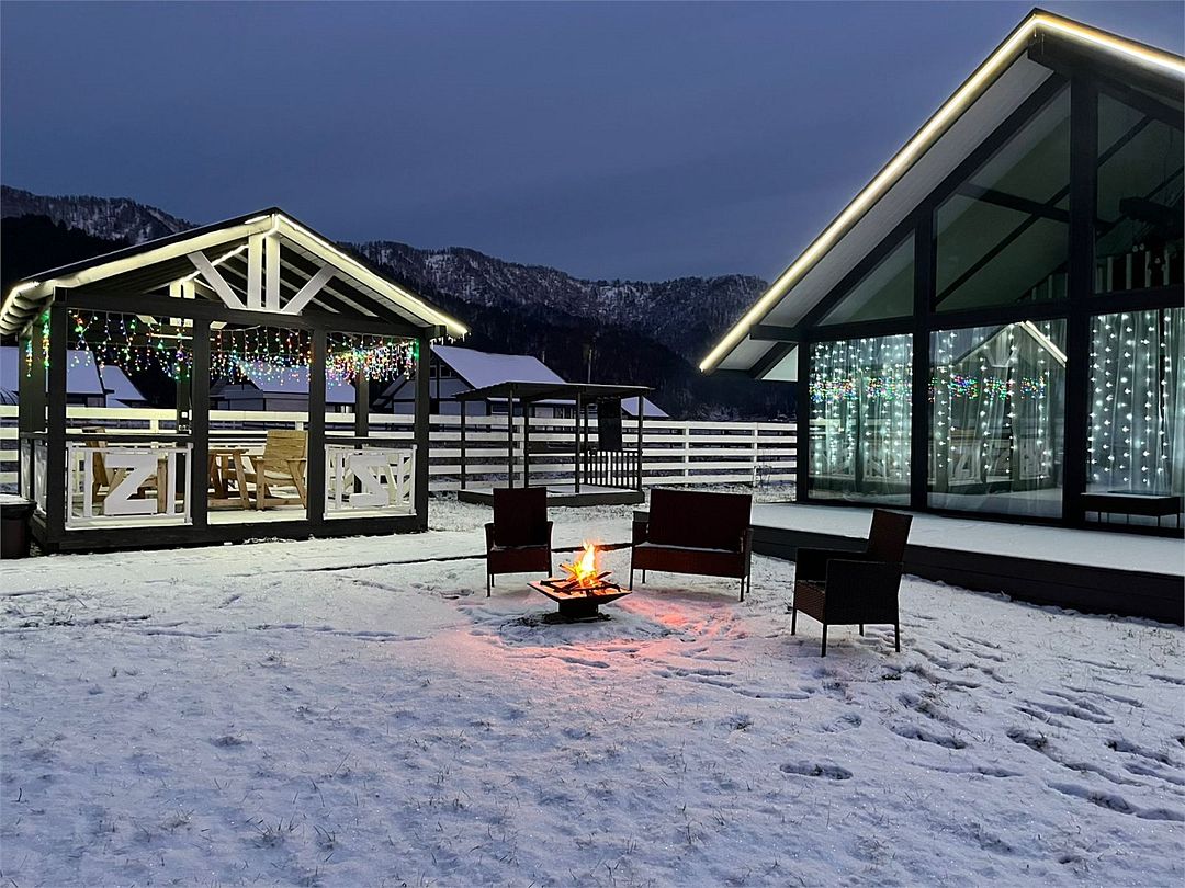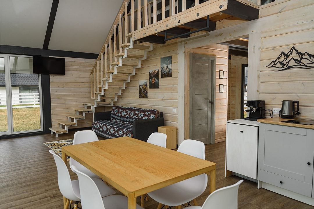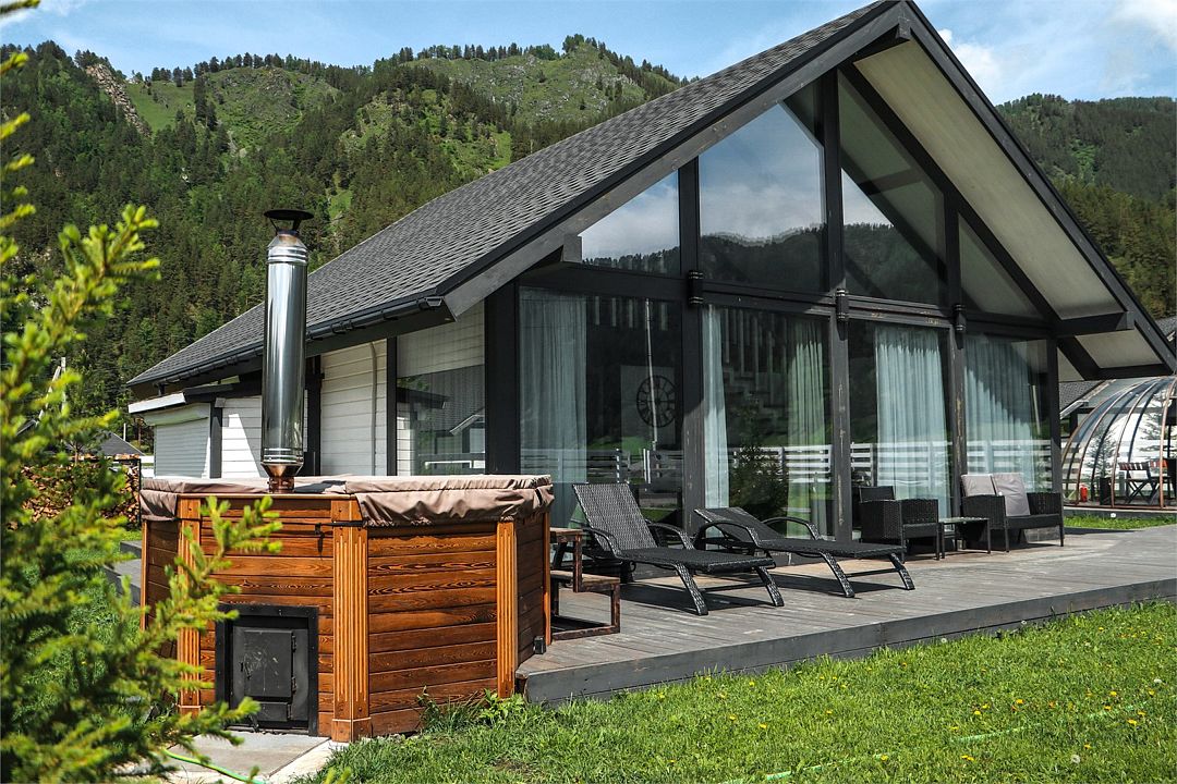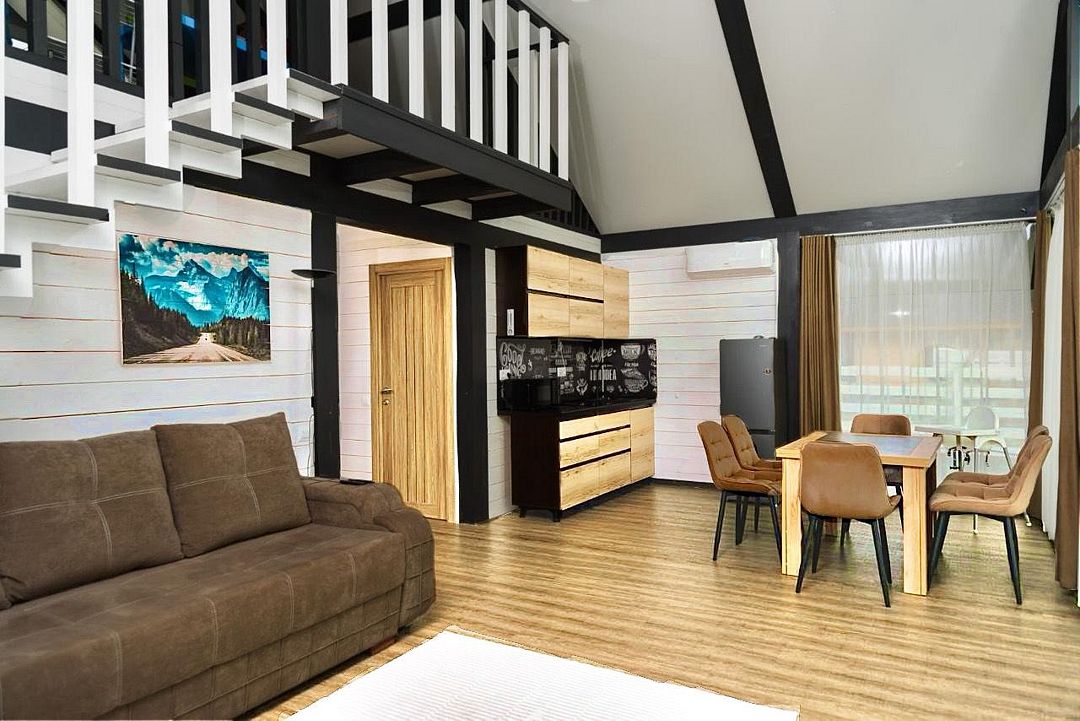 Двухэтажный коттедж, 90 кв.м. 1 Этаж: кухня-гостиная, санузел, спальня, входная зона +терраса. 2 этаж: спальня Чан оплачивается отдельно. Работает сезонноУслуги и удобства