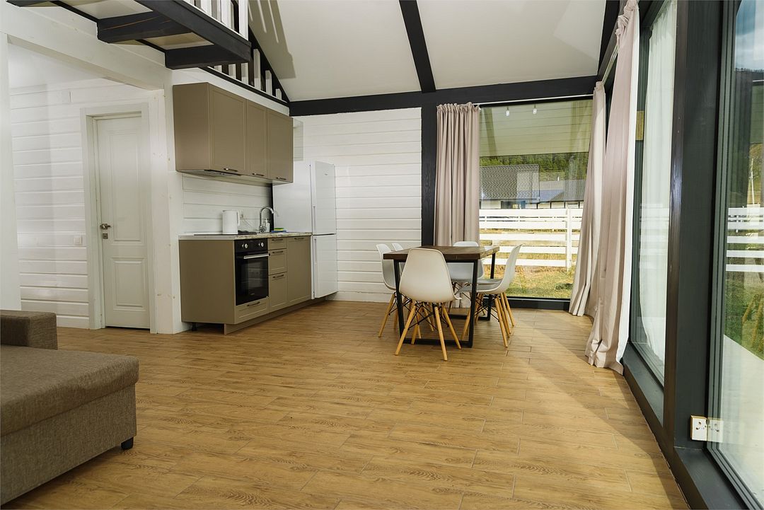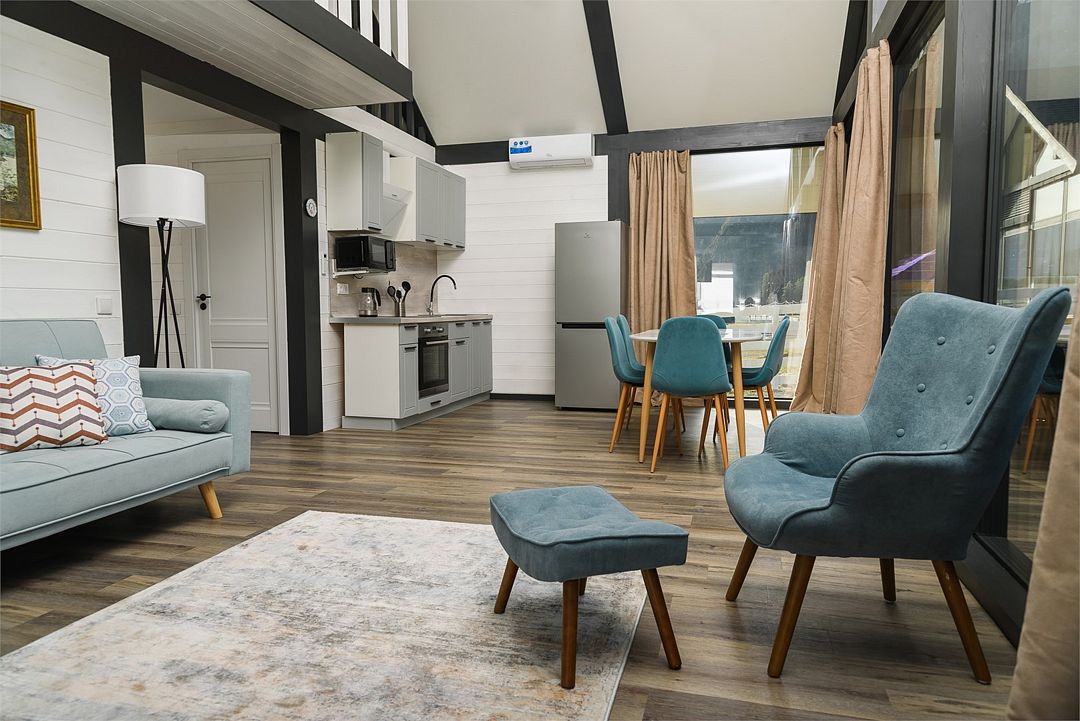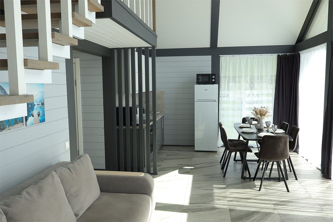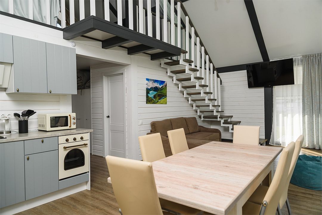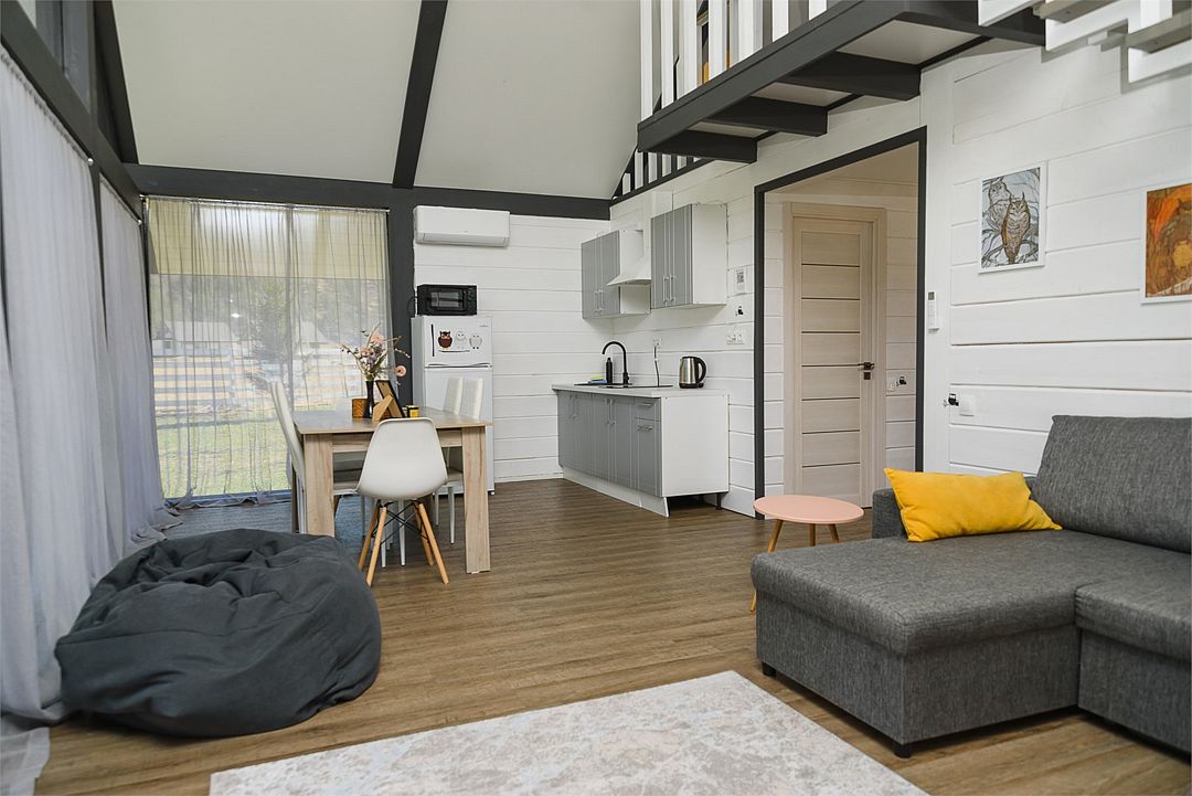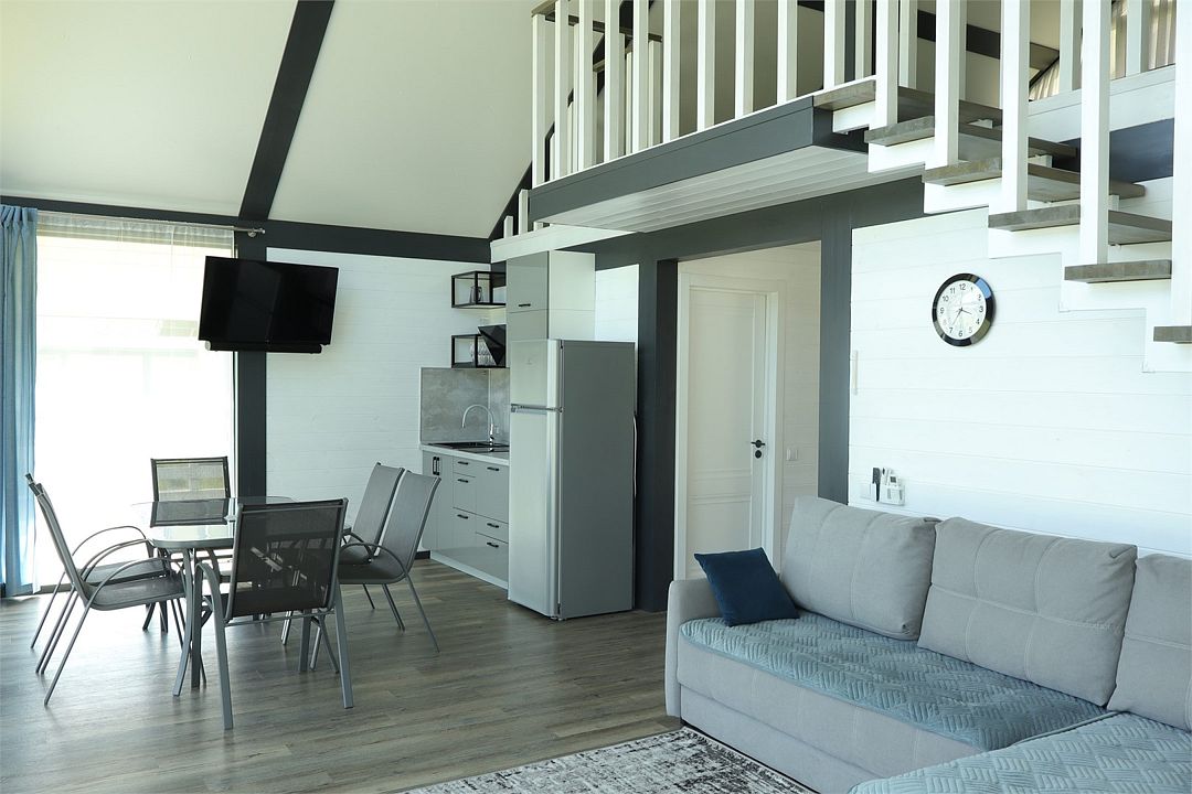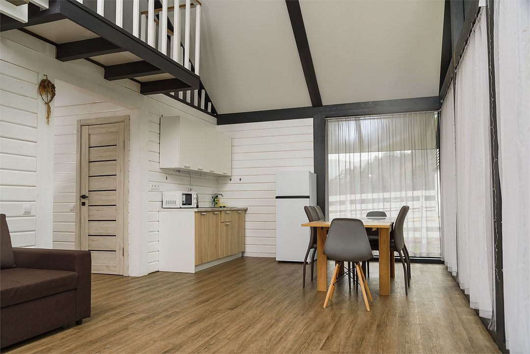 Двухэтажный коттедж, 90 кв.м. 1 Этаж: кухня-гостиная, санузел, спальня, входная зона +терраса. 2 этаж: спальняУслуги и удобства