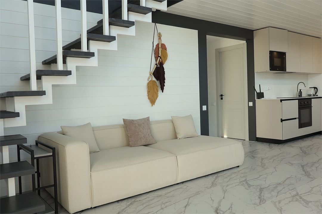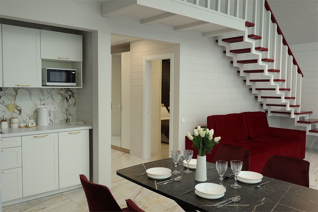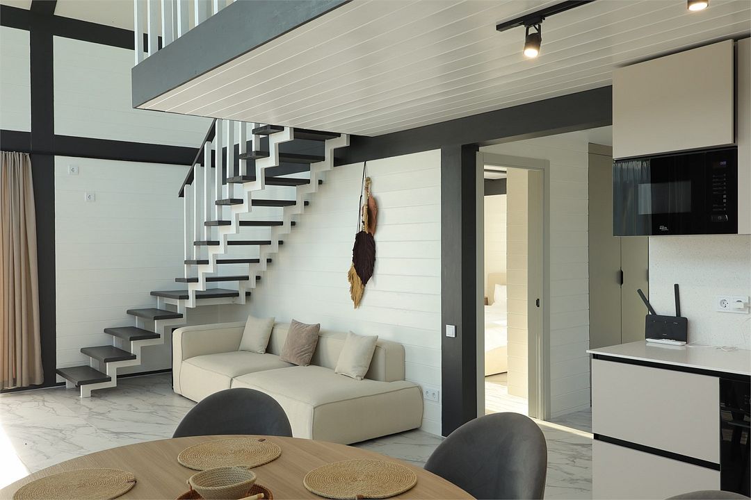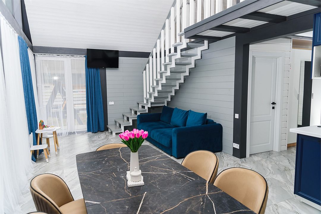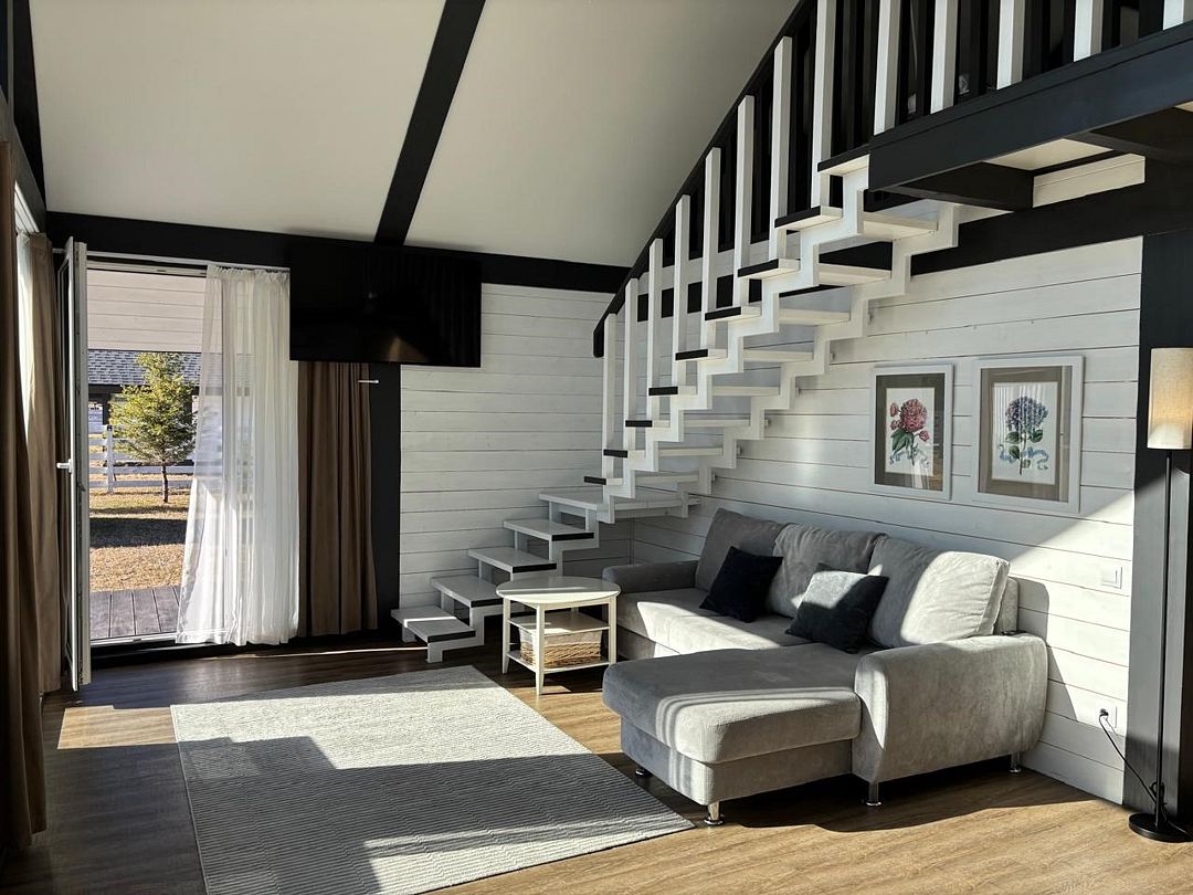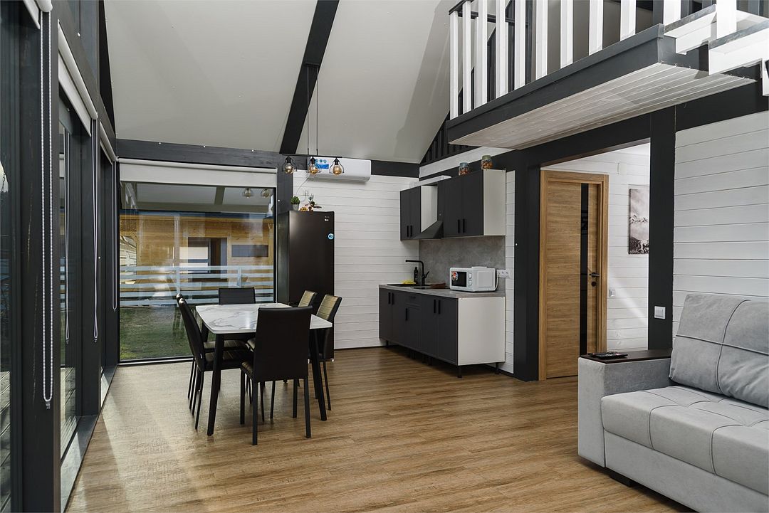 Двухэтажный коттедж, 90 кв.м. 1 Этаж: кухня-гостиная, санузел, спальня, входная зона +терраса. 2 этаж: спальняУслуги и удобства