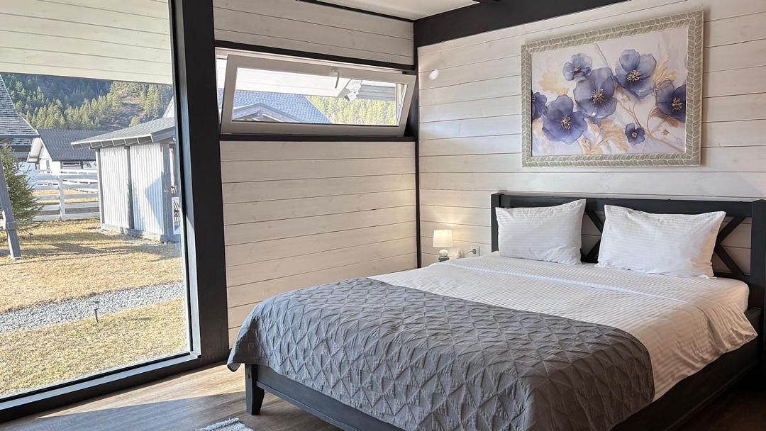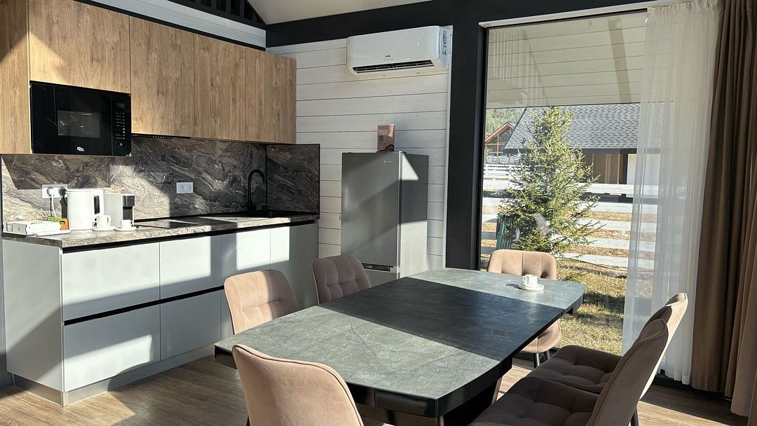 телевизор, Wi-Fi, холодильник, кондиционер, фен, плита для приготовления пищи, микроволновая печь, утюг, душевая кабина, теплый пол, банные полотенца, гигиенические средства, две двуспальные кровати, стулья, вешалки, стиральная машина, чайник, унитаз, раковина, вид во двор, тостер, стол, диван-кровать, раскладной диван, вид на горы, можно с питомцамиВ коттедже
