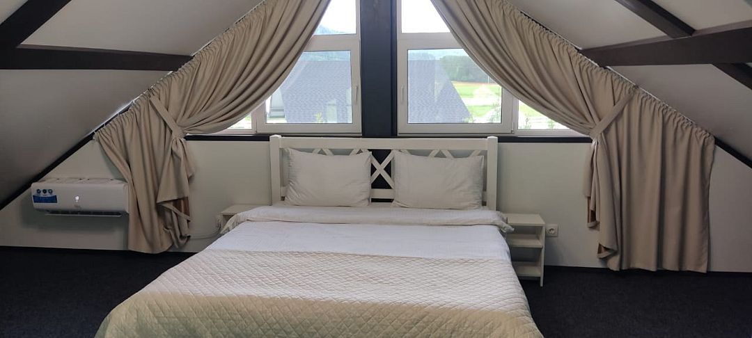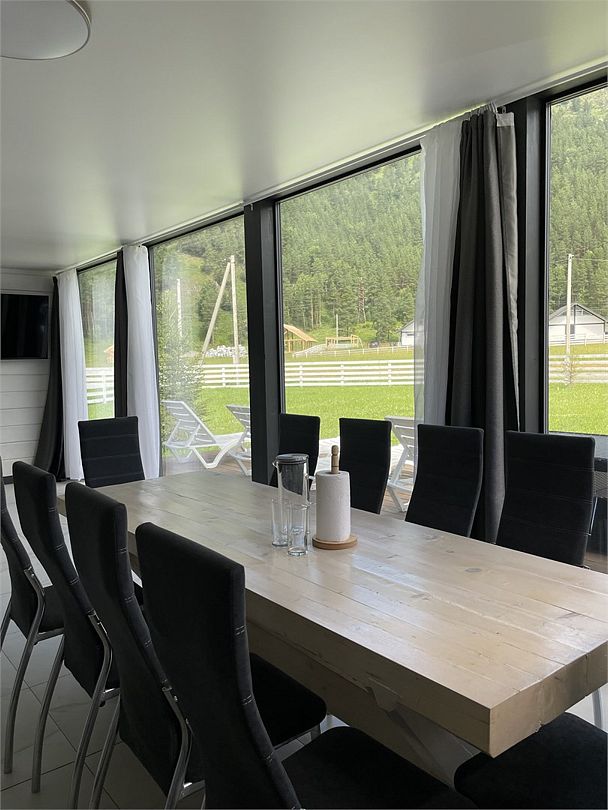 телевизор, холодильник, кондиционер, фен, плита для приготовления пищи, кофемашина, микроволновая печь, утюг, душевая кабина, теплый пол, банные полотенца, гигиенические средства, стулья, вешалки, стиральная машина, чайник, унитаз, раковина, три двуспальные кровати, вид во двор, стол, раскладной диван, вид на горы, два дивана-кровати, можно с питомцамиВ коттедже