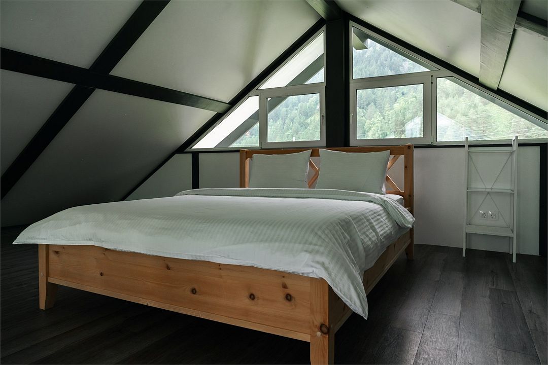 телевизор, Wi-Fi, холодильник, кондиционер, фен, плита для приготовления пищи, утюг, душевая кабина, теплый пол, банные полотенца, гигиенические средства, две двуспальные кровати, стулья, вешалки, чайник, унитаз, раковина, вид во двор, стол, сушилка для белья, диван-кровать, раскладной диван, вид на горы, можно с питомцамиВ коттедже