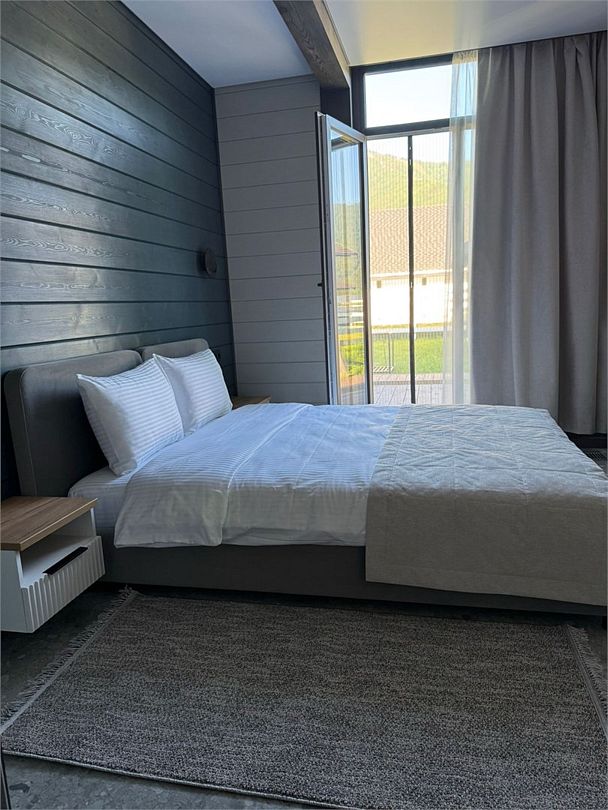 телевизор, Wi-Fi, холодильник, кондиционер, фен, плита для приготовления пищи, микроволновая печь, утюг, душевая кабина, теплый пол, банные полотенца, гигиенические средства, диван, стулья, вешалки, чайник, унитаз, раковина, три двуспальные кровати, вид во двор, стол, сушилка для белья, вид на горы, духовка, можно с питомцамиВ коттедже