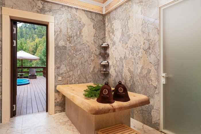 Инфраструктура: тапочки, купель, зона отдыха, полотенца, душ, халатыМинимальное время аренды: 2 часаКедровая баня с печью, которая дарит нашим гостям премиальный мелкодисперсный пар! Температура ядра печи достигает 700 градусов. Именно при таких высоких температурах образуется пар высшего сорта. Печь облицована натуральным природным камнем Серпентинит, который защищает от высоких температур, что позволяет с комфортом париться даже детям. В массажной зоне два кедровых стола. Две купели: в холодной купели- бодрящие контрасты, а в теплой- неспешное созерцание звездного неба. Большая терраса с широким обзором Телецких гор.