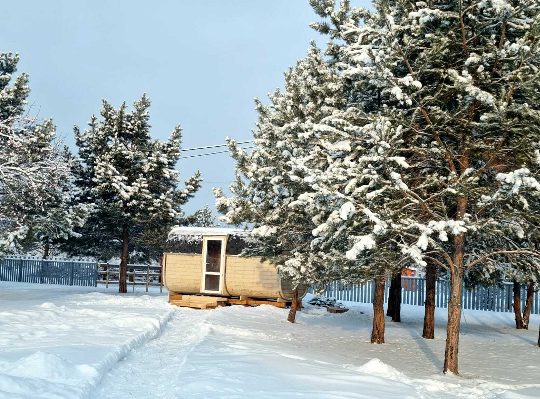 При нагревании кедр выделяет полезные для человека фитонциды и эфирные масла, которые помогают в борьбе с вирусными заболеваниями, укрепляют иммунитет, ускоряют обмен веществ, запускают процессы омоложения тканей и снимают стресс. С зоной отдыха на свежем воздухе в окружении Алтайских сосен.