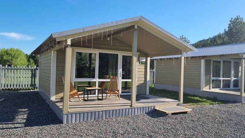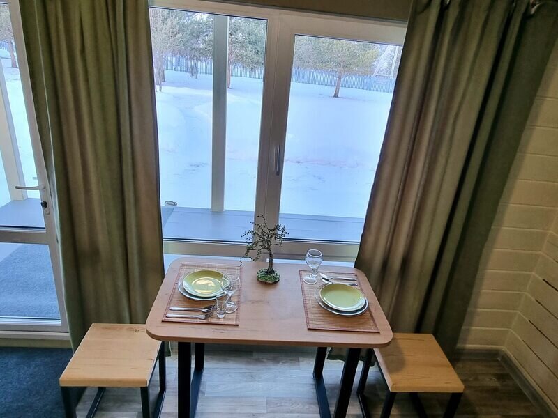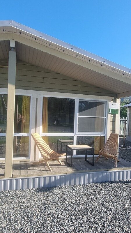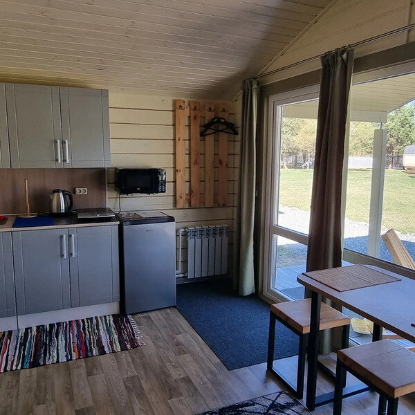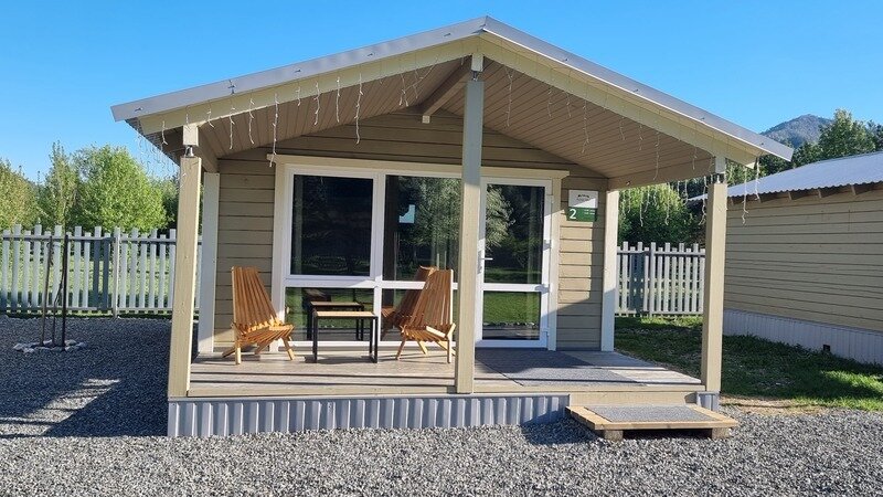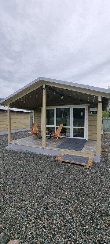 Отдельно стоящий круглогодичный дом «Шале» с террасой для трех человек.