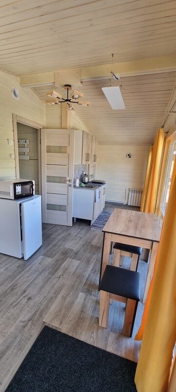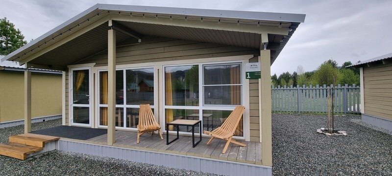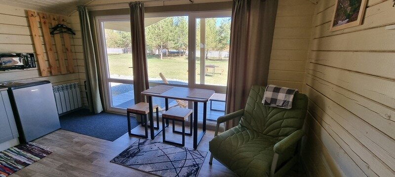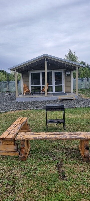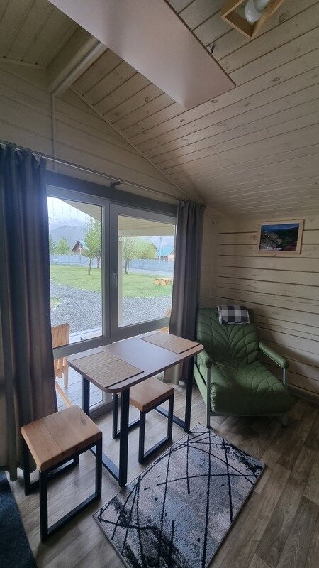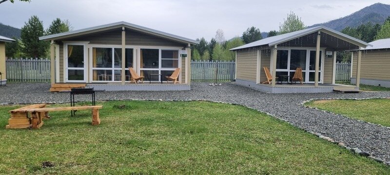 Новые уютные дома находятся среди сосед неподалёку от реки Катунь и оборудованы всем необходимым, чтобы проживание в них было комфортным и беззаботным. Панорамное остекление с выходом на террасу подарит потрясающий вид на горы. Рядом с каждым домиком есть мангал и гамак.
