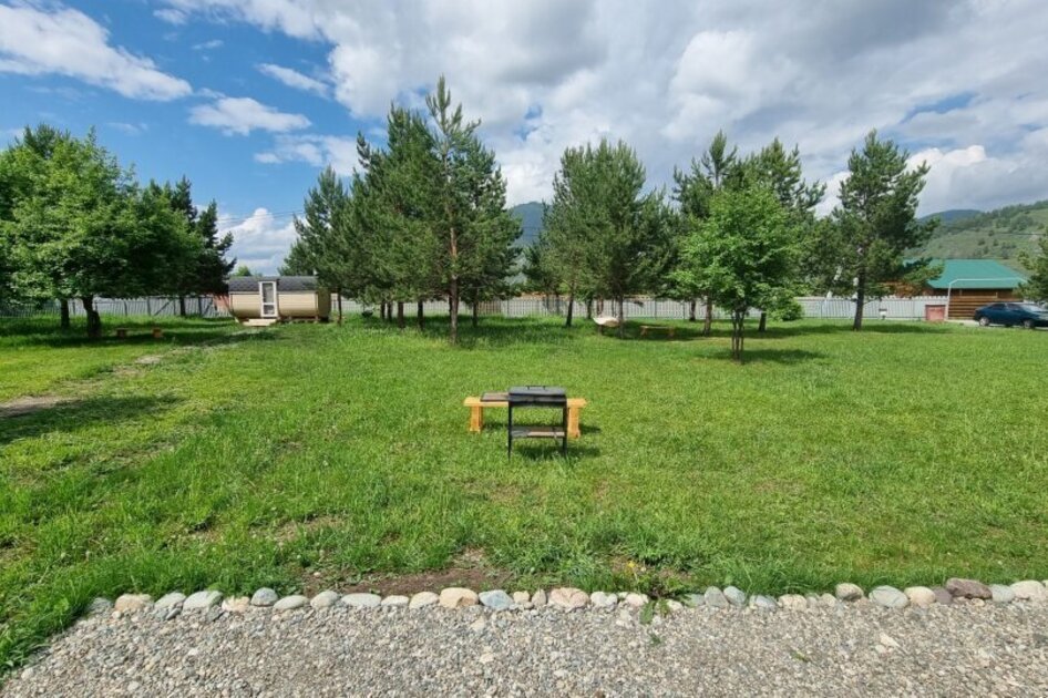 С зоной отдыха на свежем воздухе в окружении Алтайских сосен.