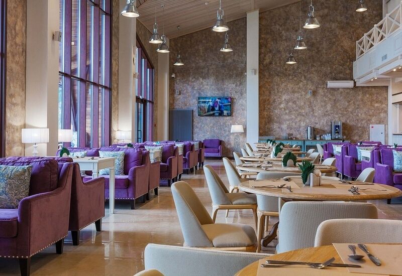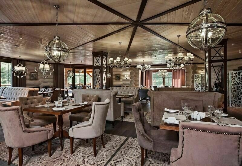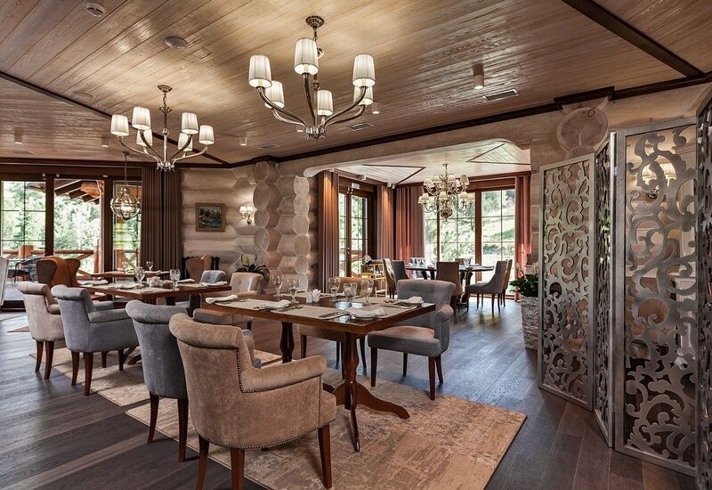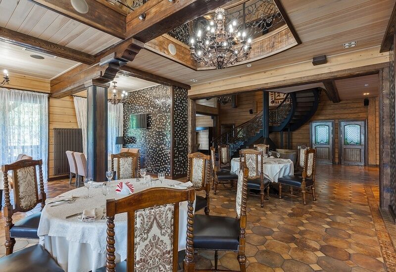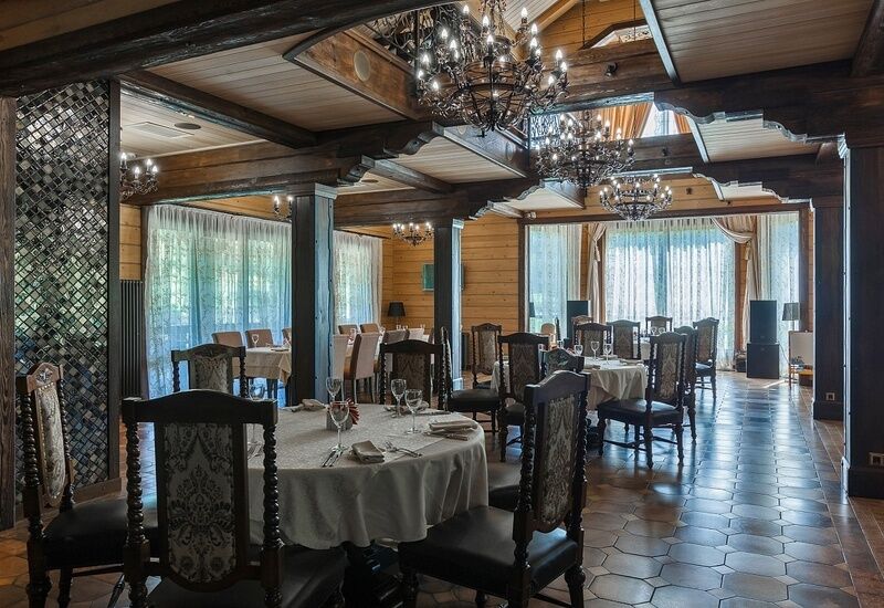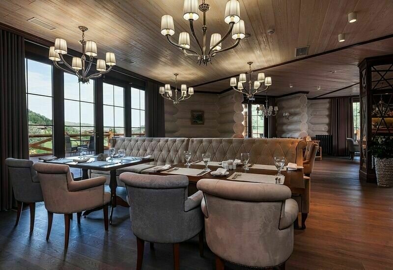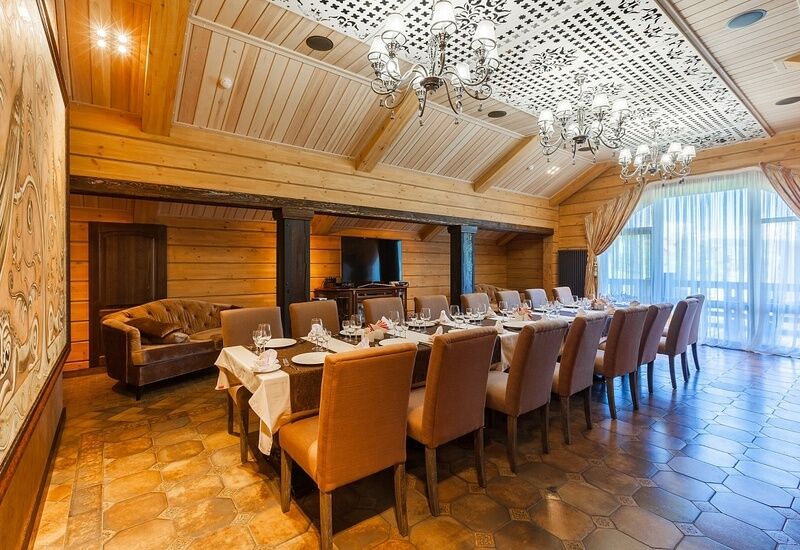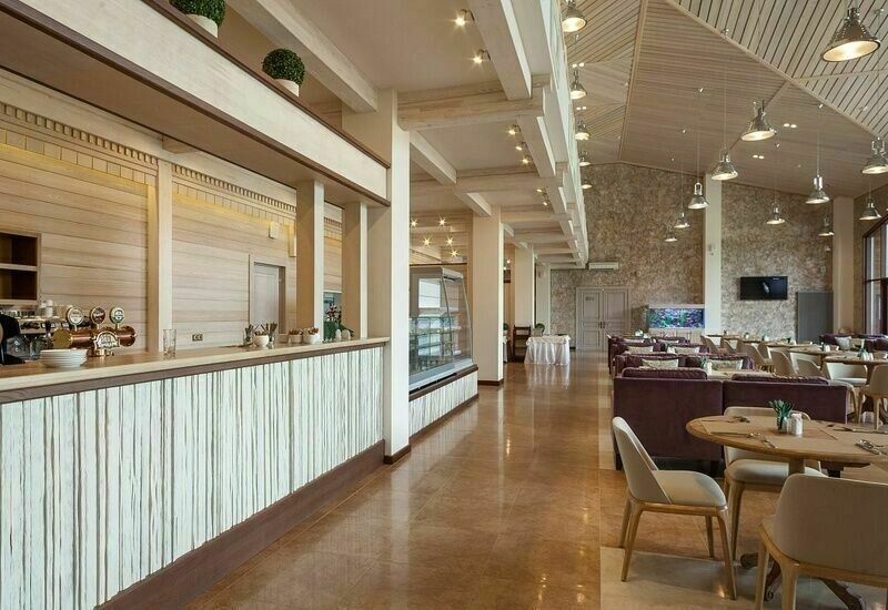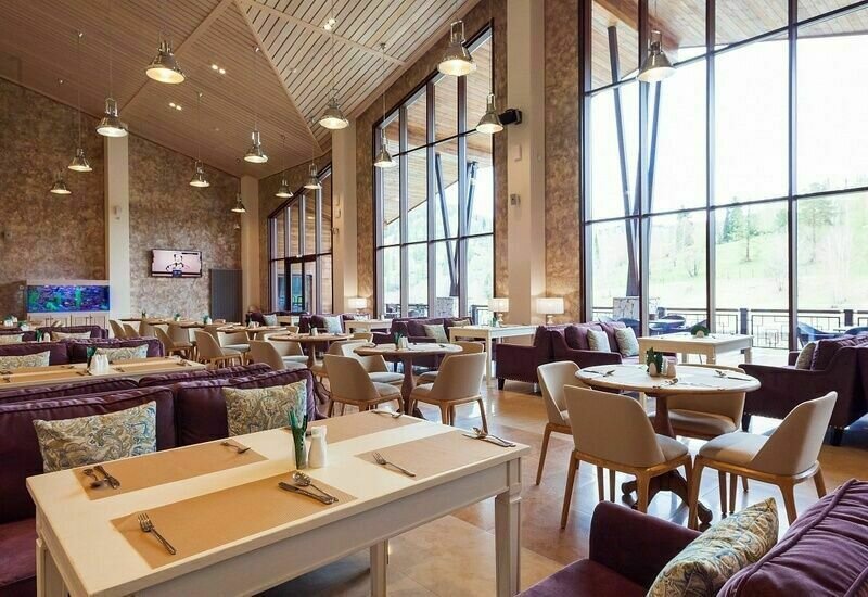 Ресторан комплекса «Алтай Resort» расположен в красивом месте на берегу озера. Первый этаж занимают светлый просторный обеденный зал вместимостью 60 мест и бар.