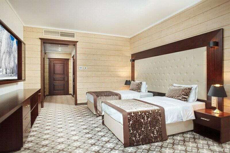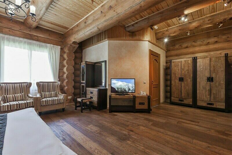 Гости могут выбрать коттеджи из кедра в русском стиле или дома из сосны в стиле швейцарских шале. Также есть новая трехэтажная гостиница «Эдельвейс» с современными интерьерами и номерами, оборудованными кроватями-трансформерами. Некоторые номера адаптированы для маломобильных гостей.