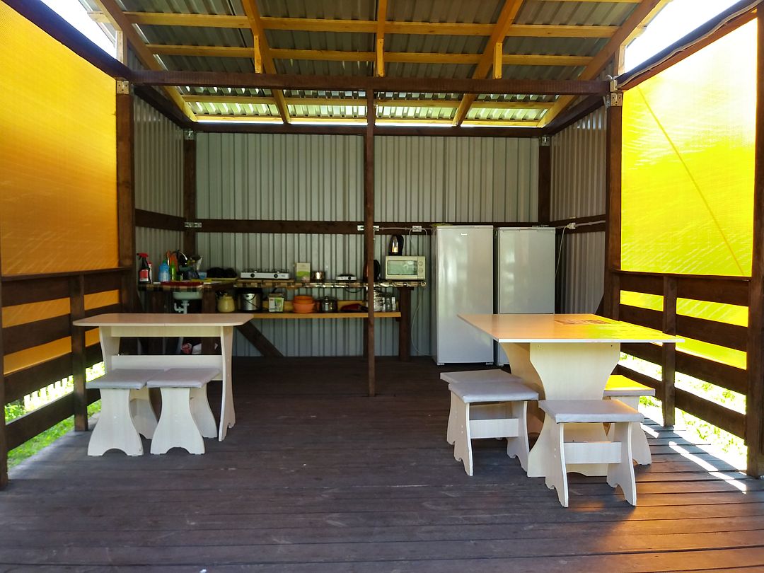 - Большая беседка с оборудованной кухонной зоной;