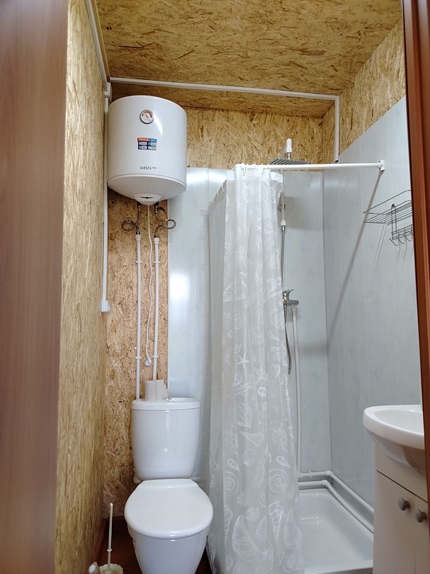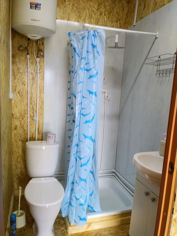 - санузел: душевая с холодной и горячей водой, унитаз, раковина, средства гигиены (жидкое мыло);