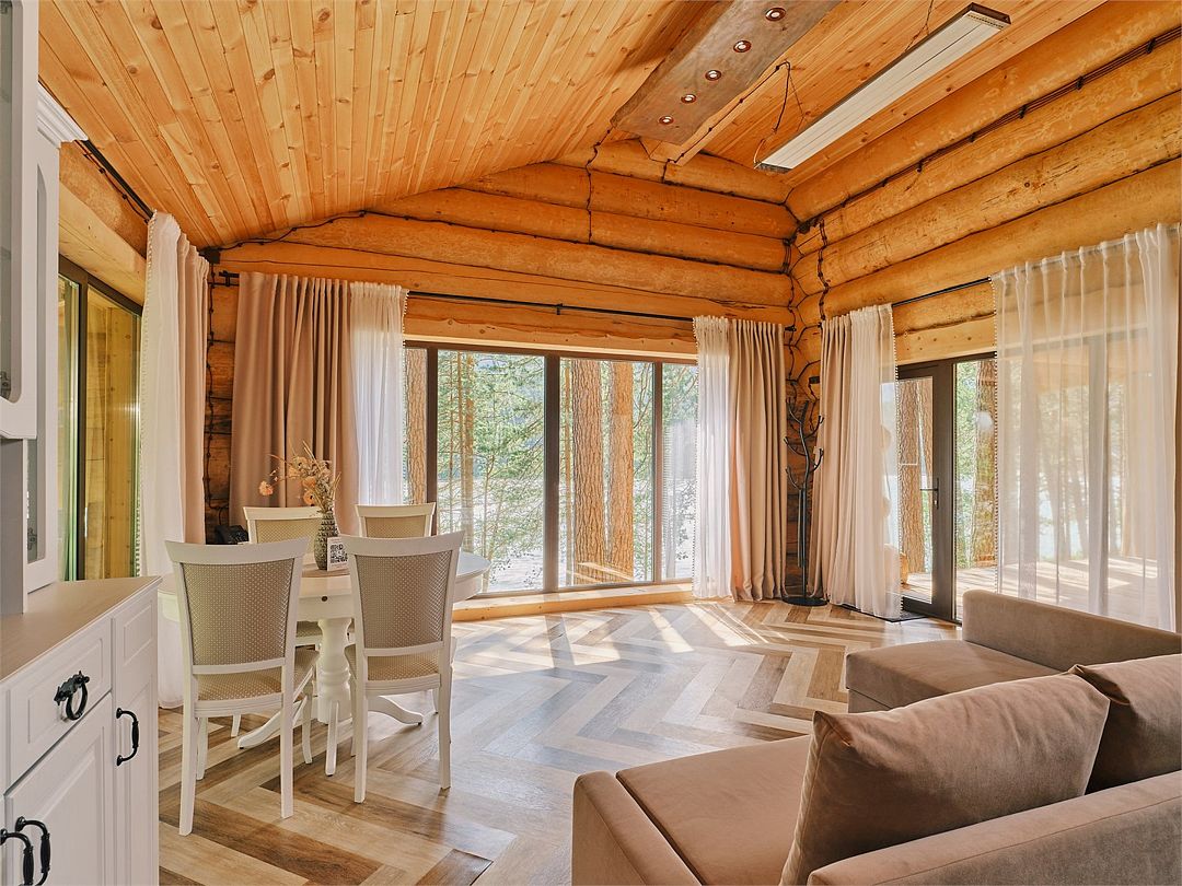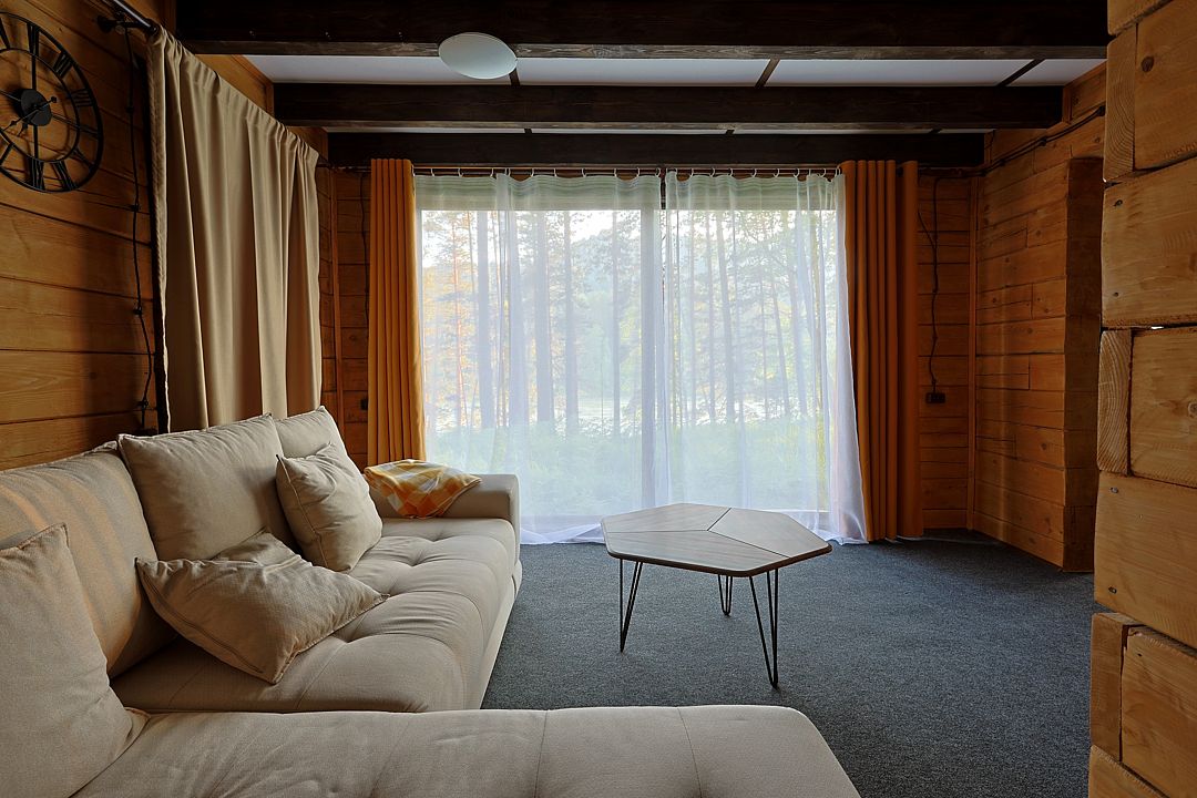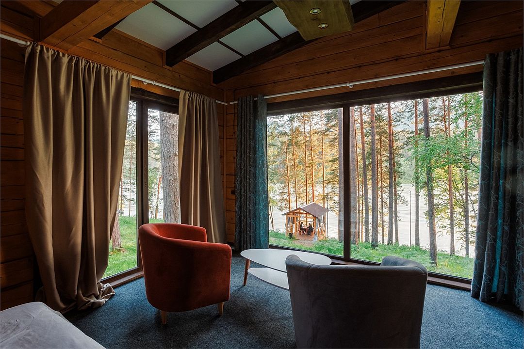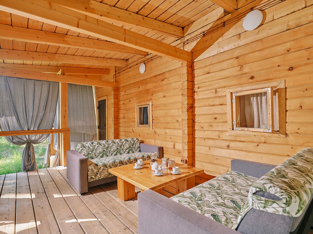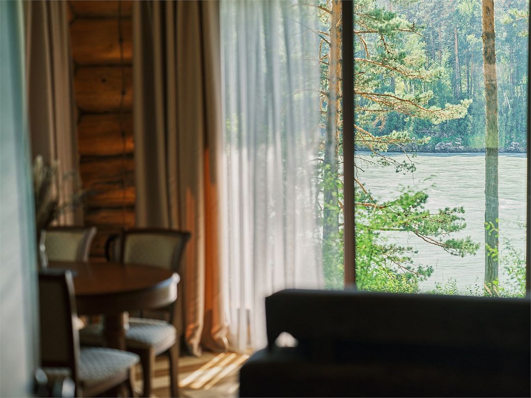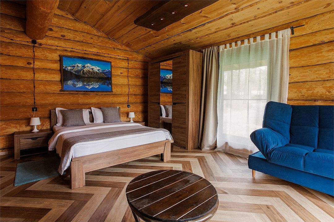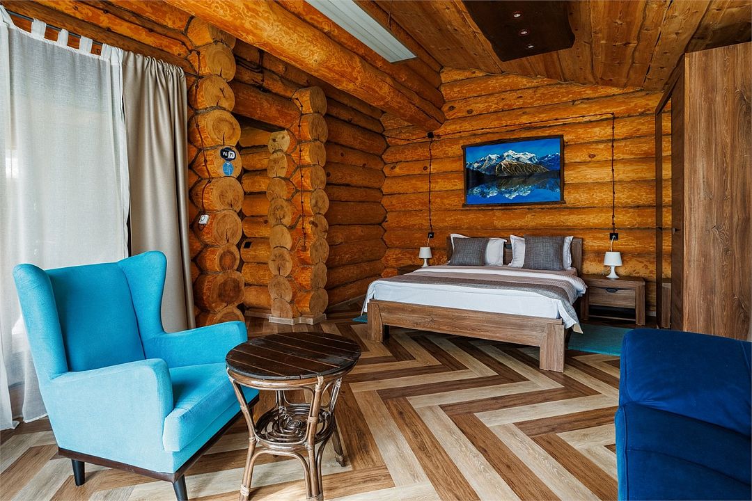 Здесь, среди живописных пейзажей, гости могут насладиться комфортом и уютом шале из кедра, оформленных в стиле рустик с современными деталями. Просторные номера легко вмещают до четырех человек и более, создавая атмосферу домашнего тепла и семейного уюта. Внимание к каждой мелочи делает пребывание здесь особенно приятным и вдохновляющим.