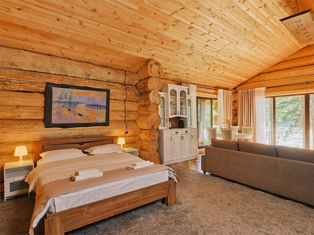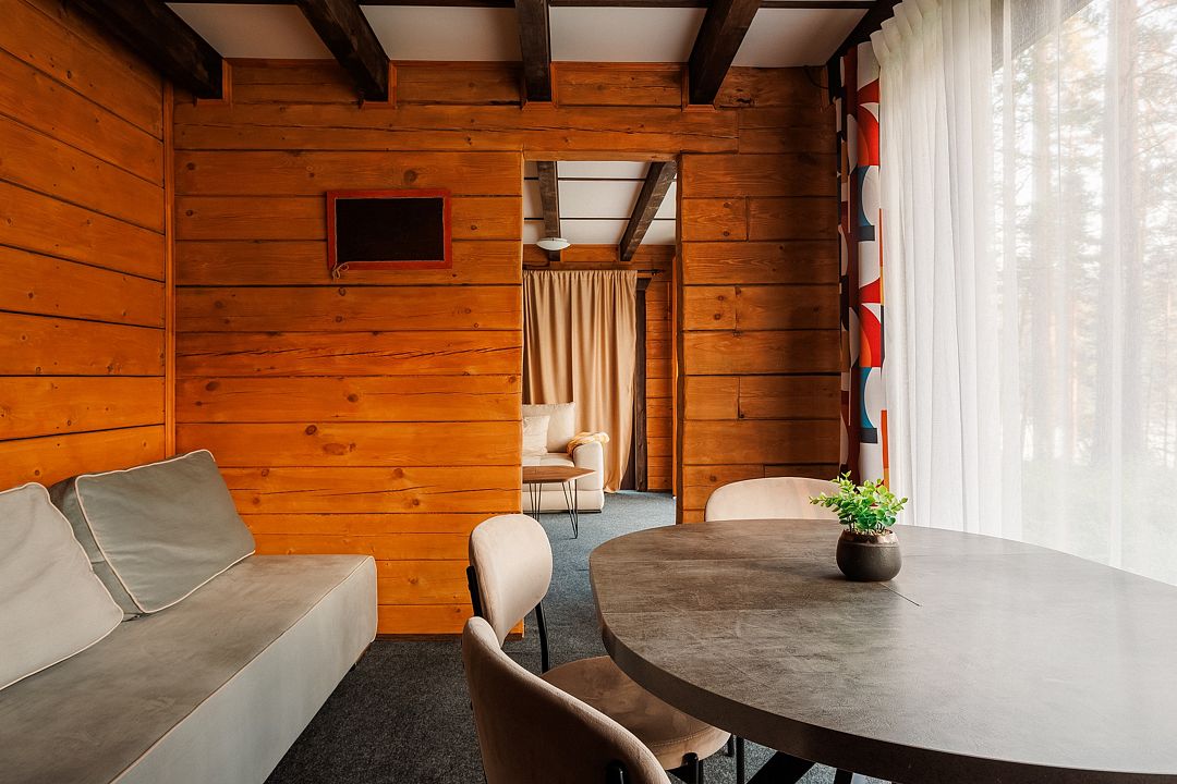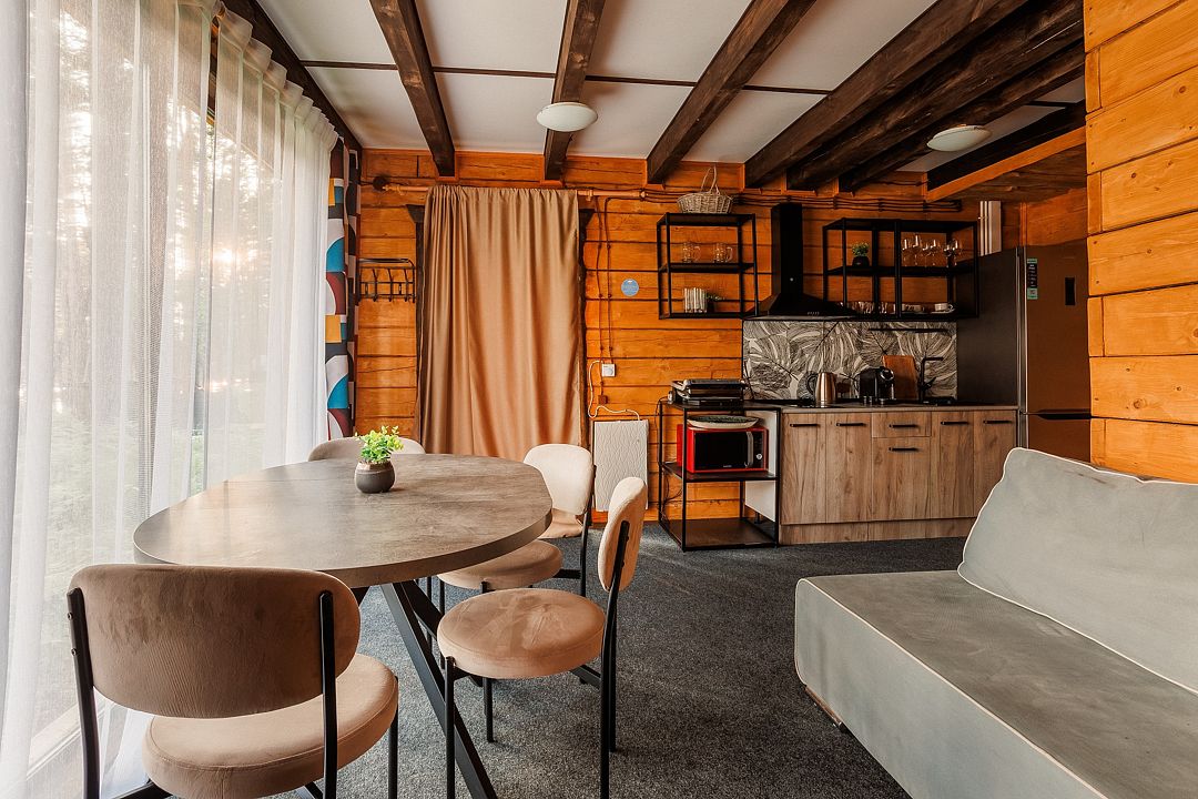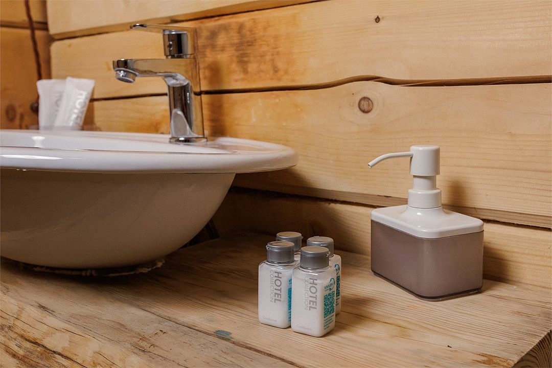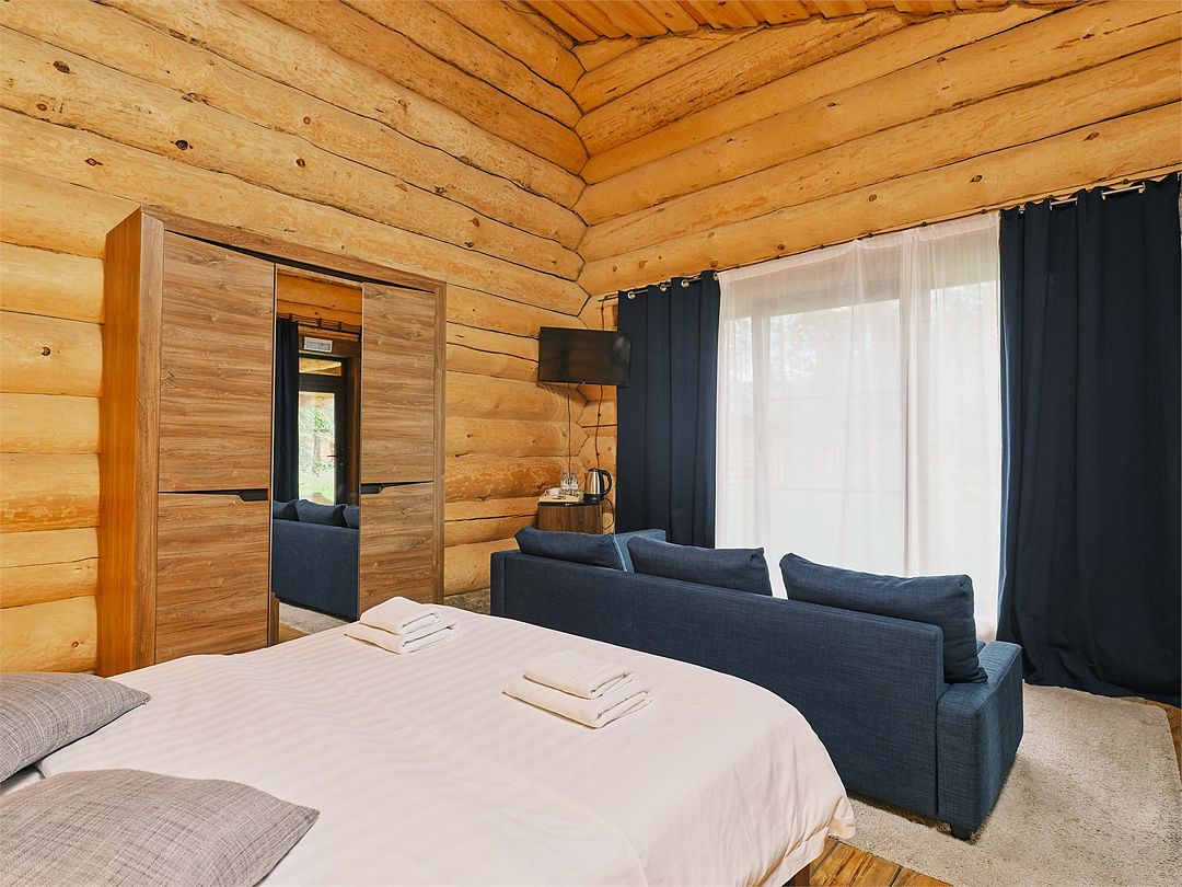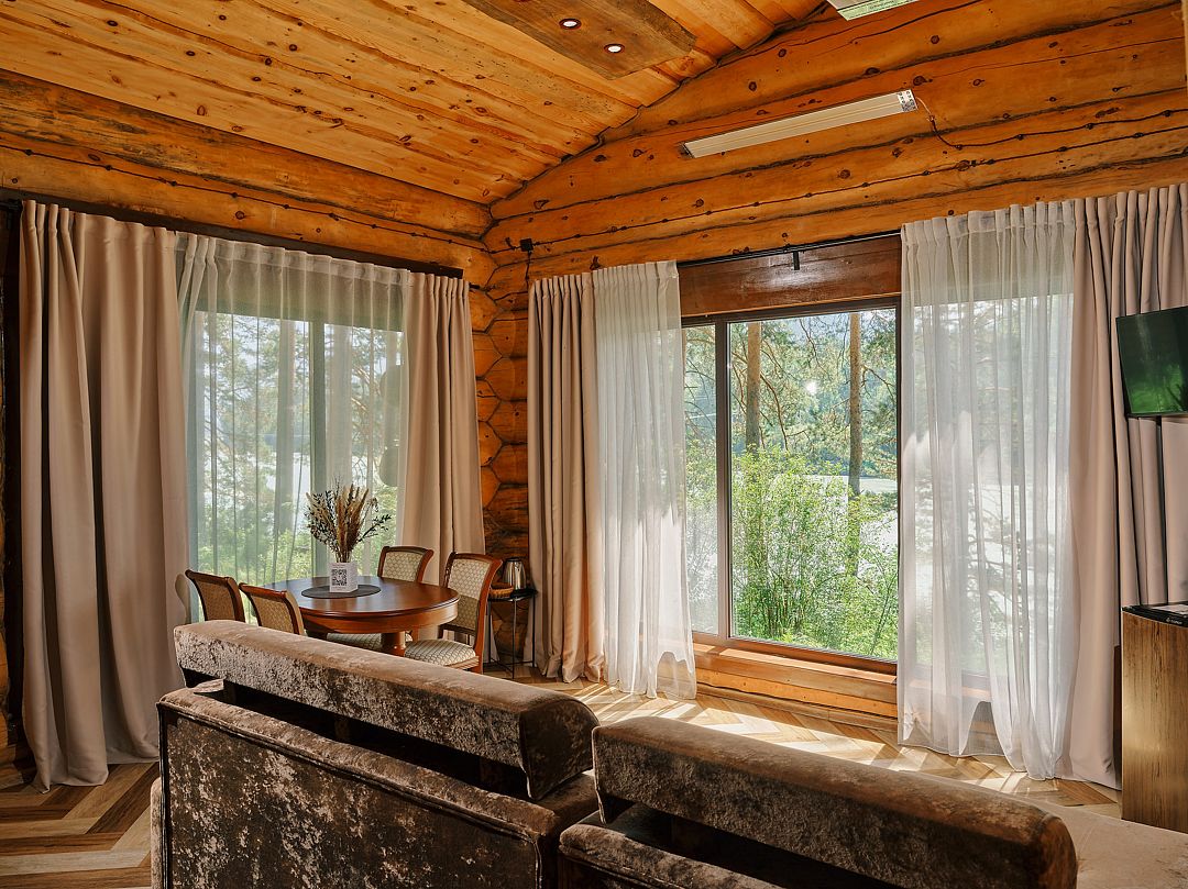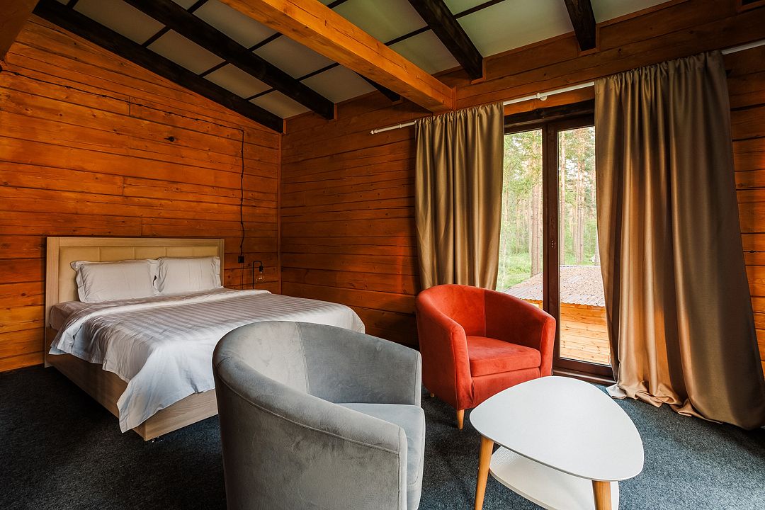 Здесь, среди живописных пейзажей, гости могут насладиться комфортом и уютом шале из кедра, оформленных в стиле рустик с современными деталями. Просторные номера легко вмещают до четырех человек и более, создавая атмосферу домашнего тепла и семейного уюта. Внимание к каждой мелочи делает пребывание здесь особенно приятным и вдохновляющим.