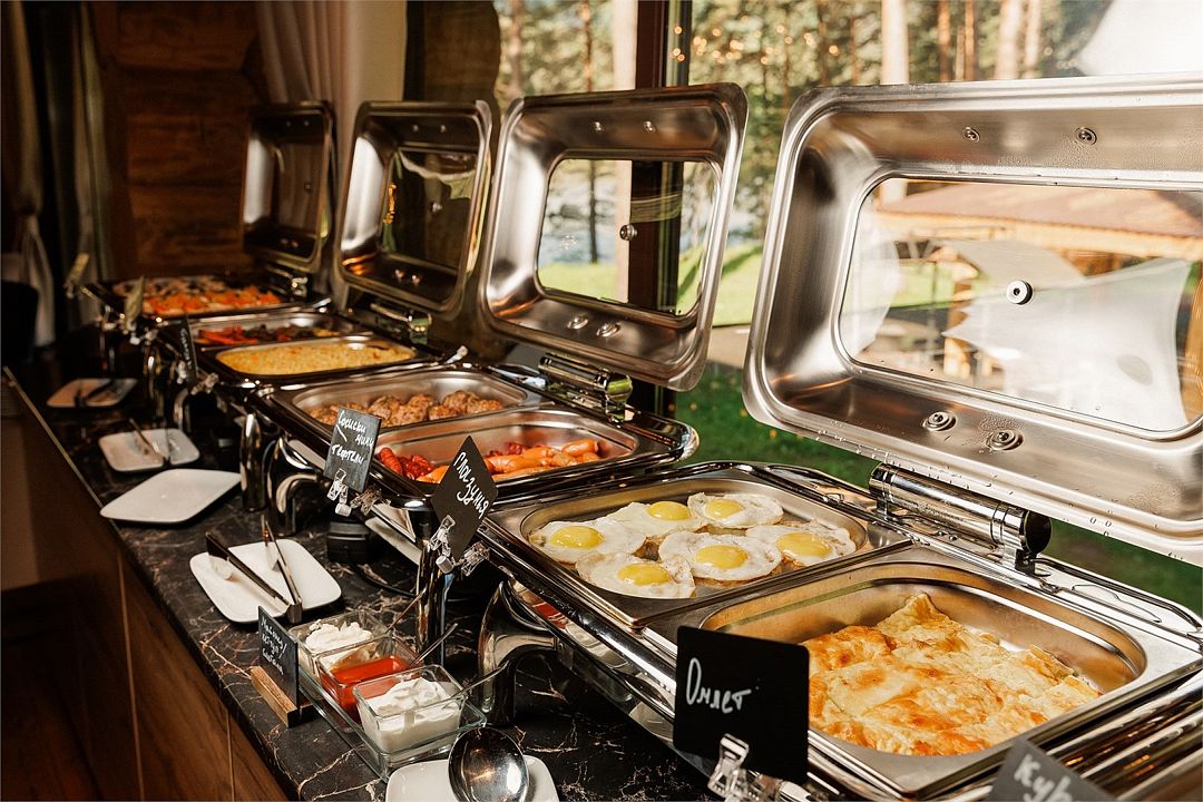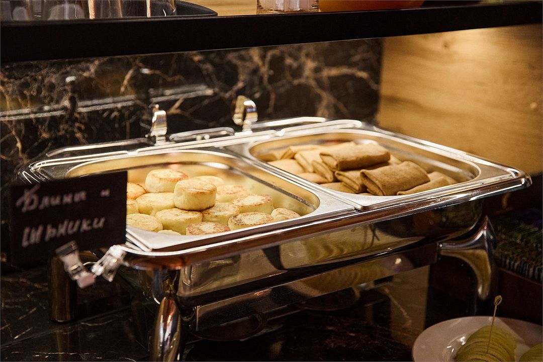Завтрак «шведский стол» сервируется ежедневно с 08:00 до 11:00, позволяя гостям начать день с приятного и сытного утреннего приема пищи.