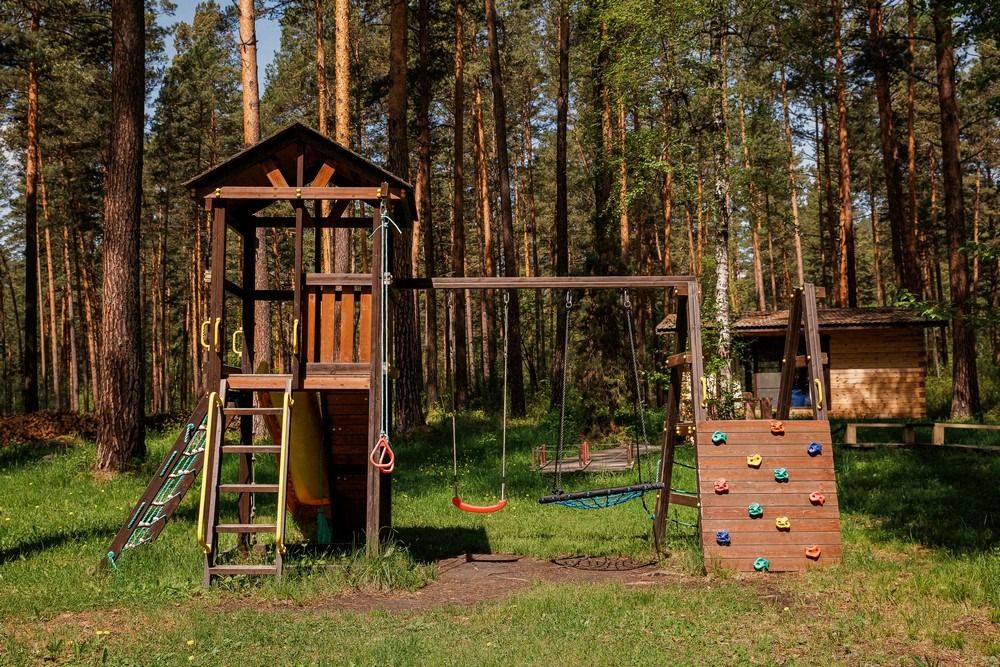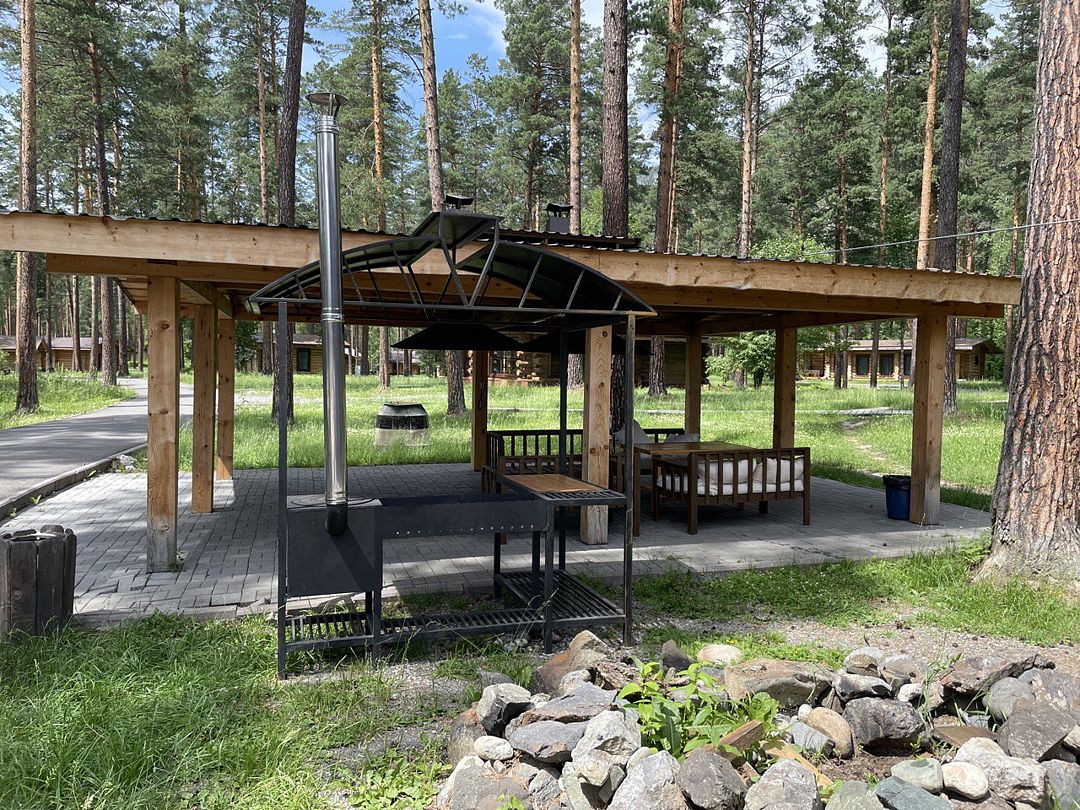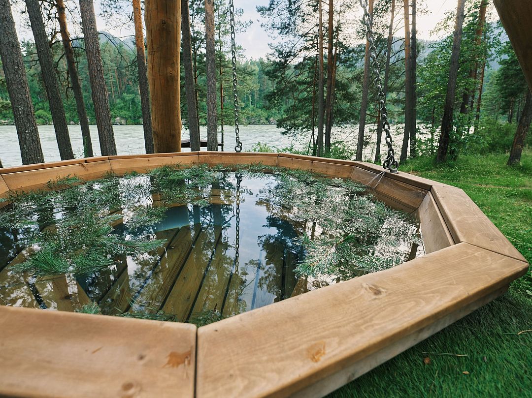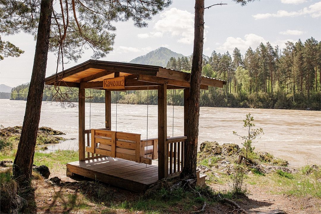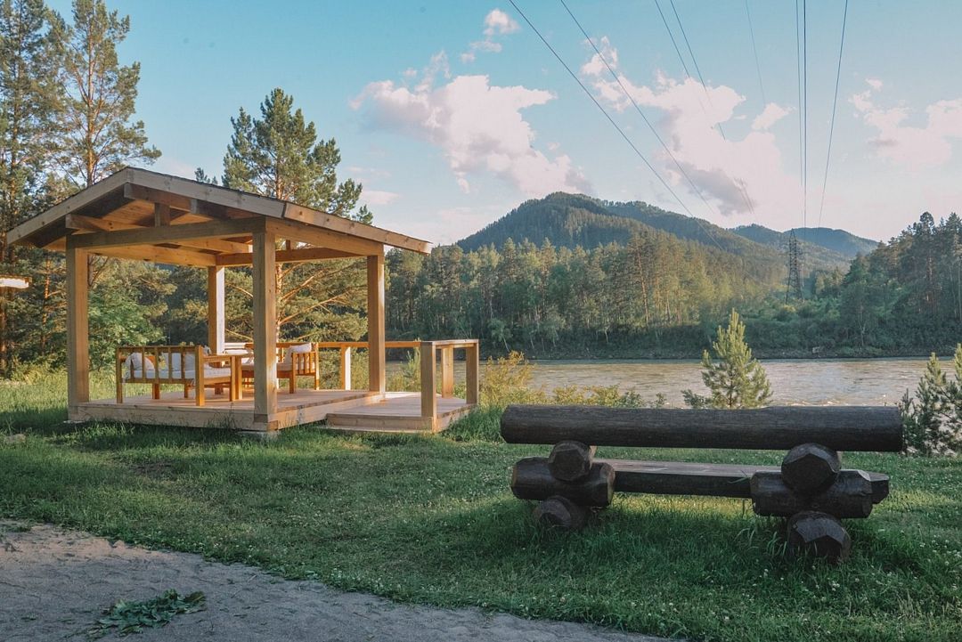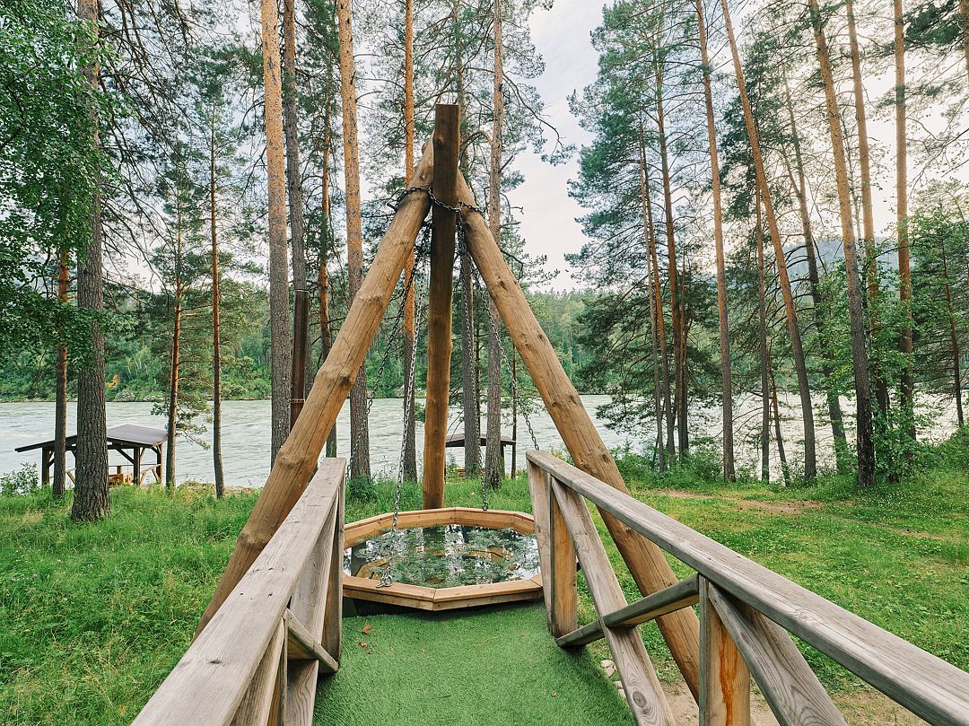 На территории расположены: качели на берегу Катуни, беседки с мангалами на берегу Катуни, СПА-центр, банный комплекс с чаном и купелью, малая баня с чаном, йога-центр, детская комната и уличная детская площадка, конференц-зал/переговорная, ресторан североморской кухни.