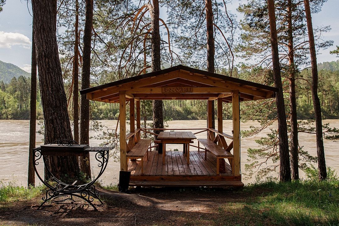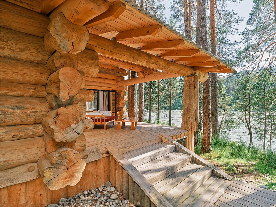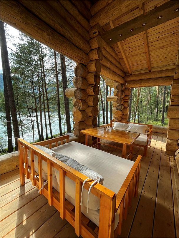 Шале с личной террасой на берегу Катуни и панорамными окнами.