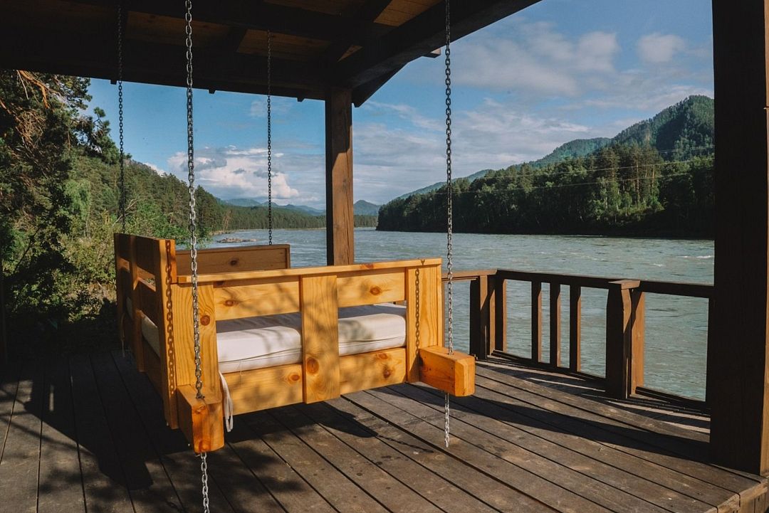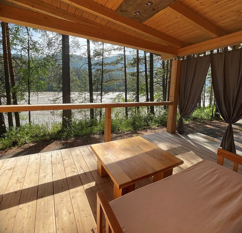 Шале на берегу Катуни с панорамными окнами и личной террасой.