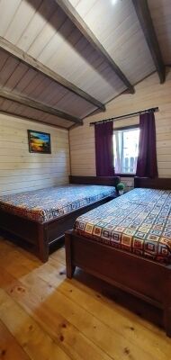 Уютные, новые, просторные номера подходят для комфортного отдыха с друзьями и детьми. В каждом номере есть туалет и душевая кабина, кухня с микроволновкой и холодильником. В пяти минутах ходьбы находится столовая, где можно недорого и сытно пообедать.