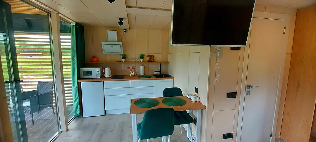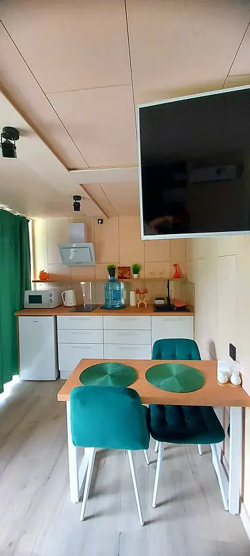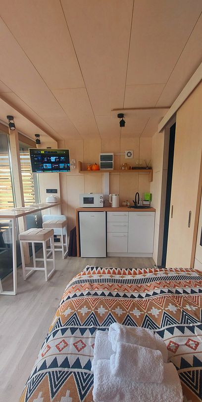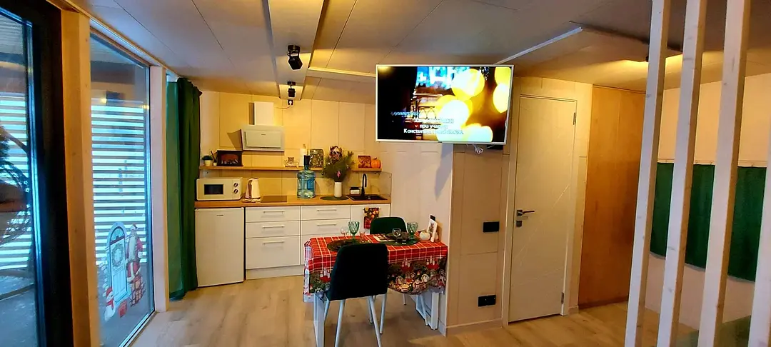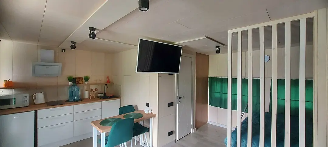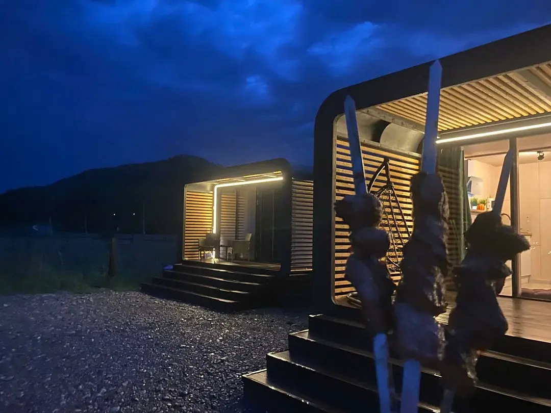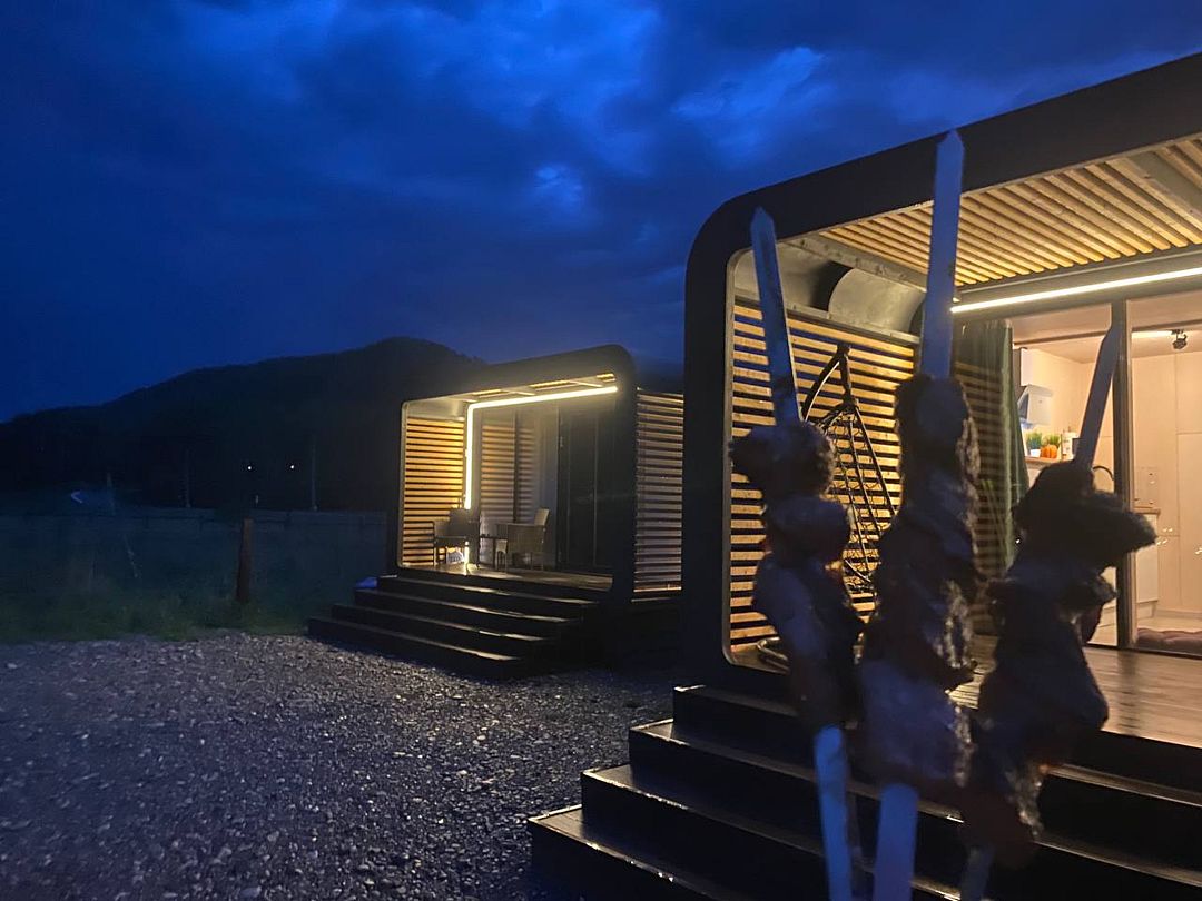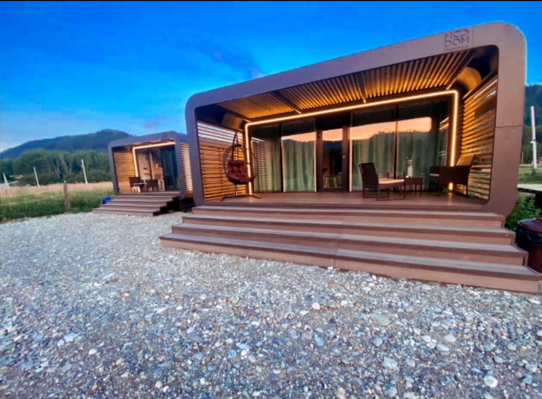 Для размещения гостей предлагаются благоустроенные модульные домики, оборудованные всем необходимым для комфортного проживания. Отдохнуть можно на уютной террасе с живописным видом. На территории имеется автопарковка, мангал, качели. Рядом протекает река Катунь.